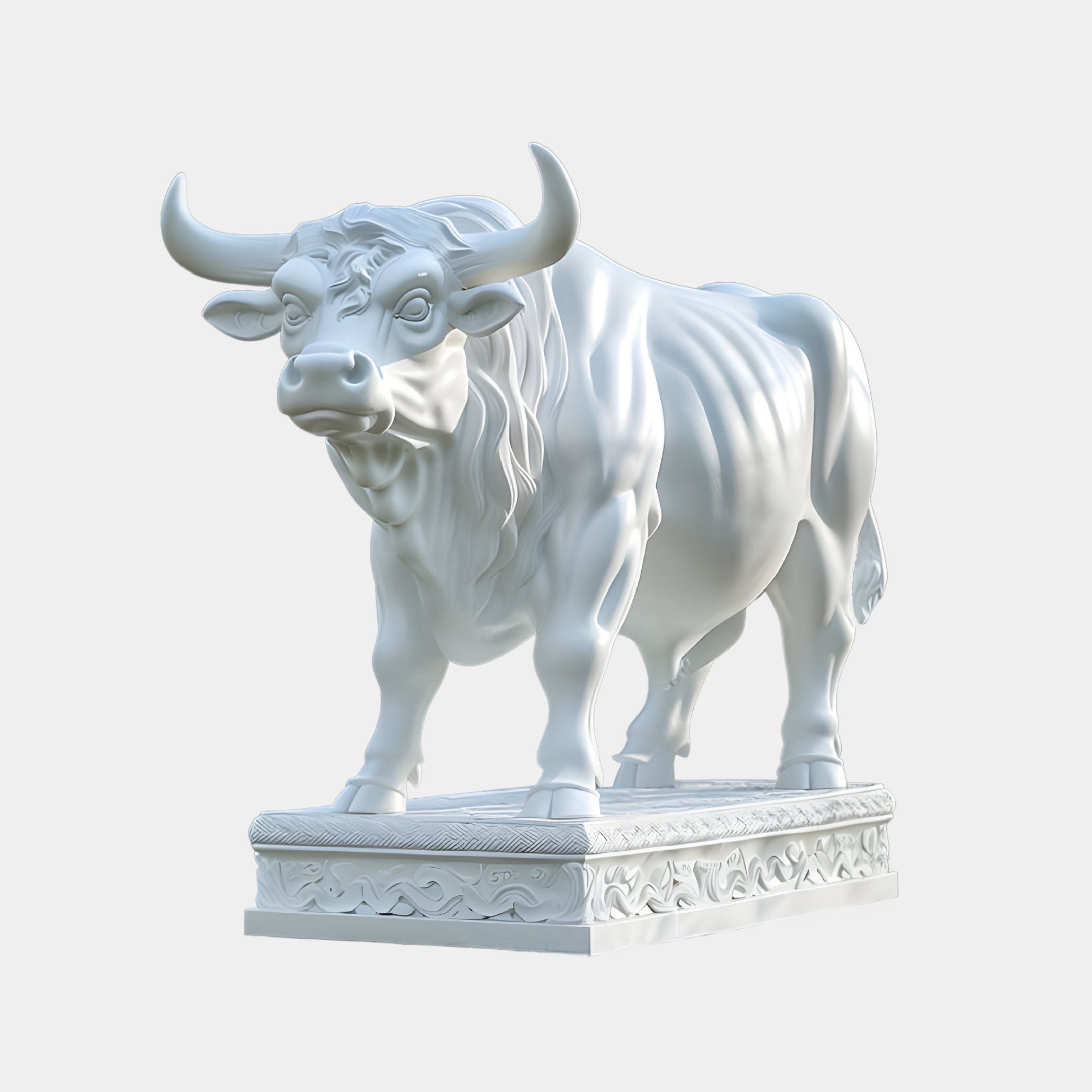 Stoic Bull White Marble Outdoor Sculpture - 120cm