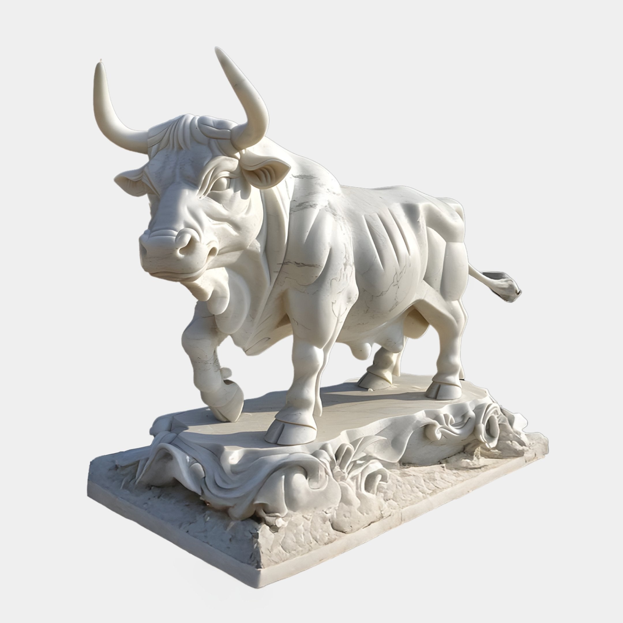 Majestic Bull White Marble Outdoor Sculpture - 120cm