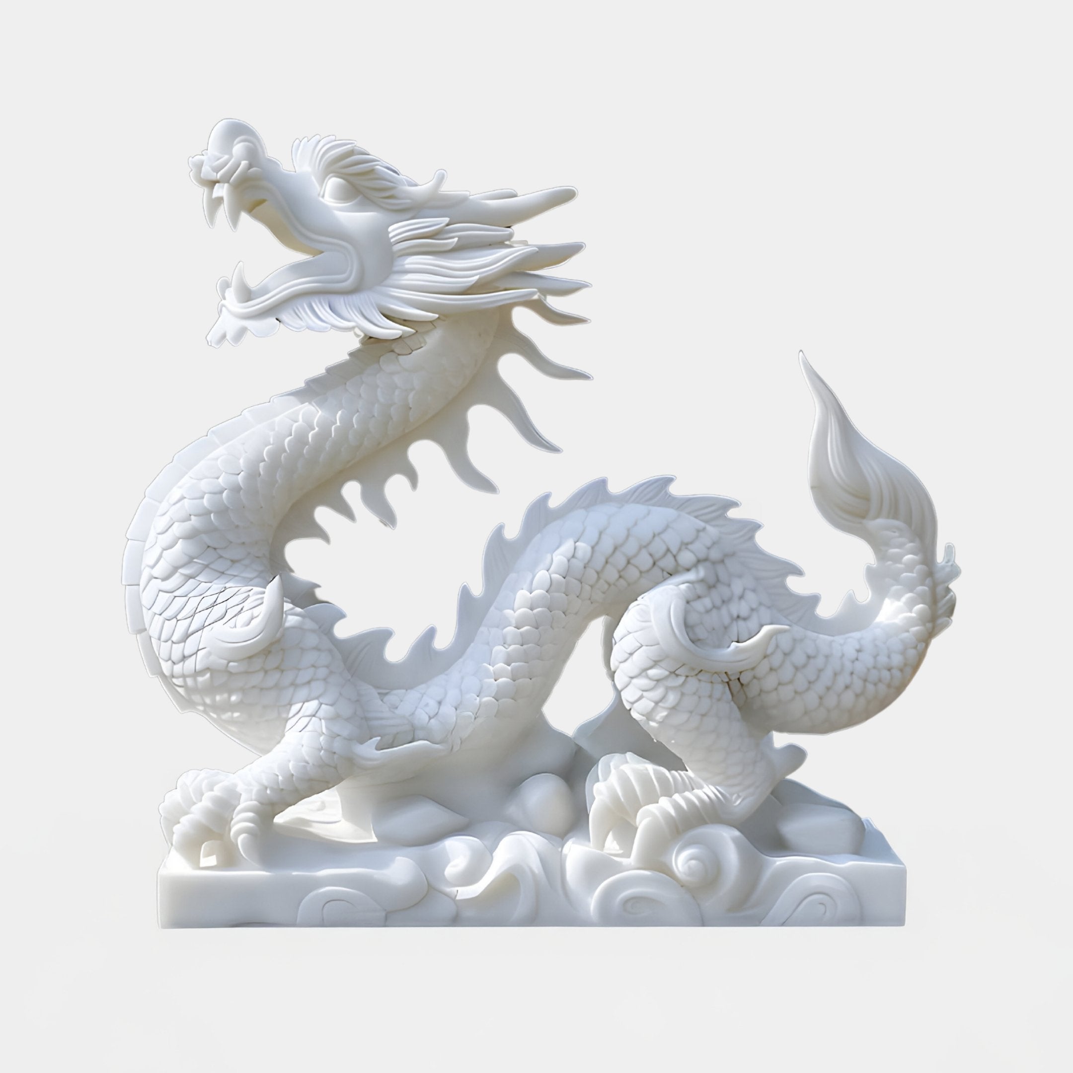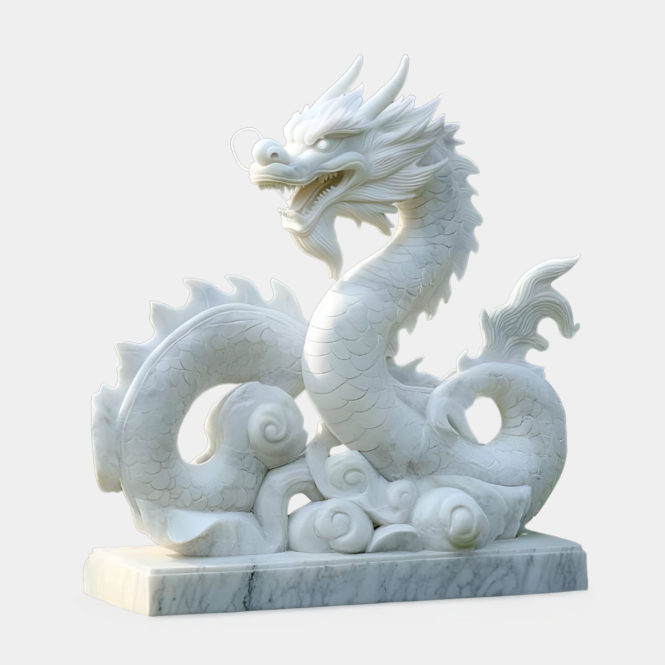 Mystical Dragon White Marble Outdoor Sculpture - 100cm