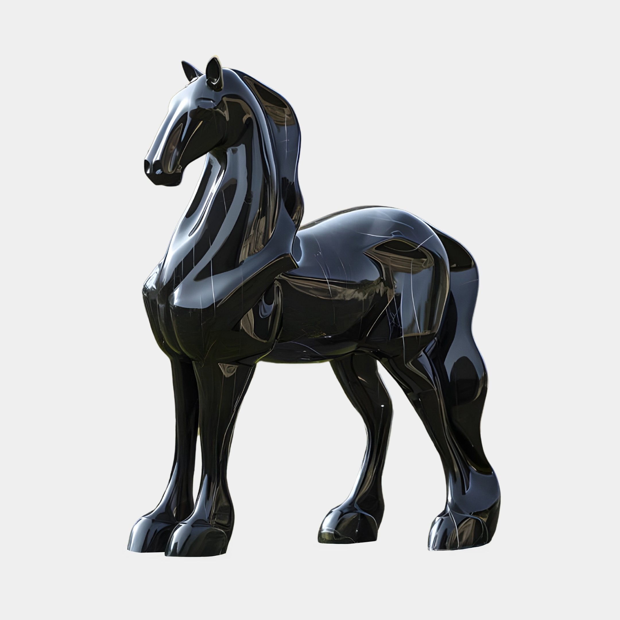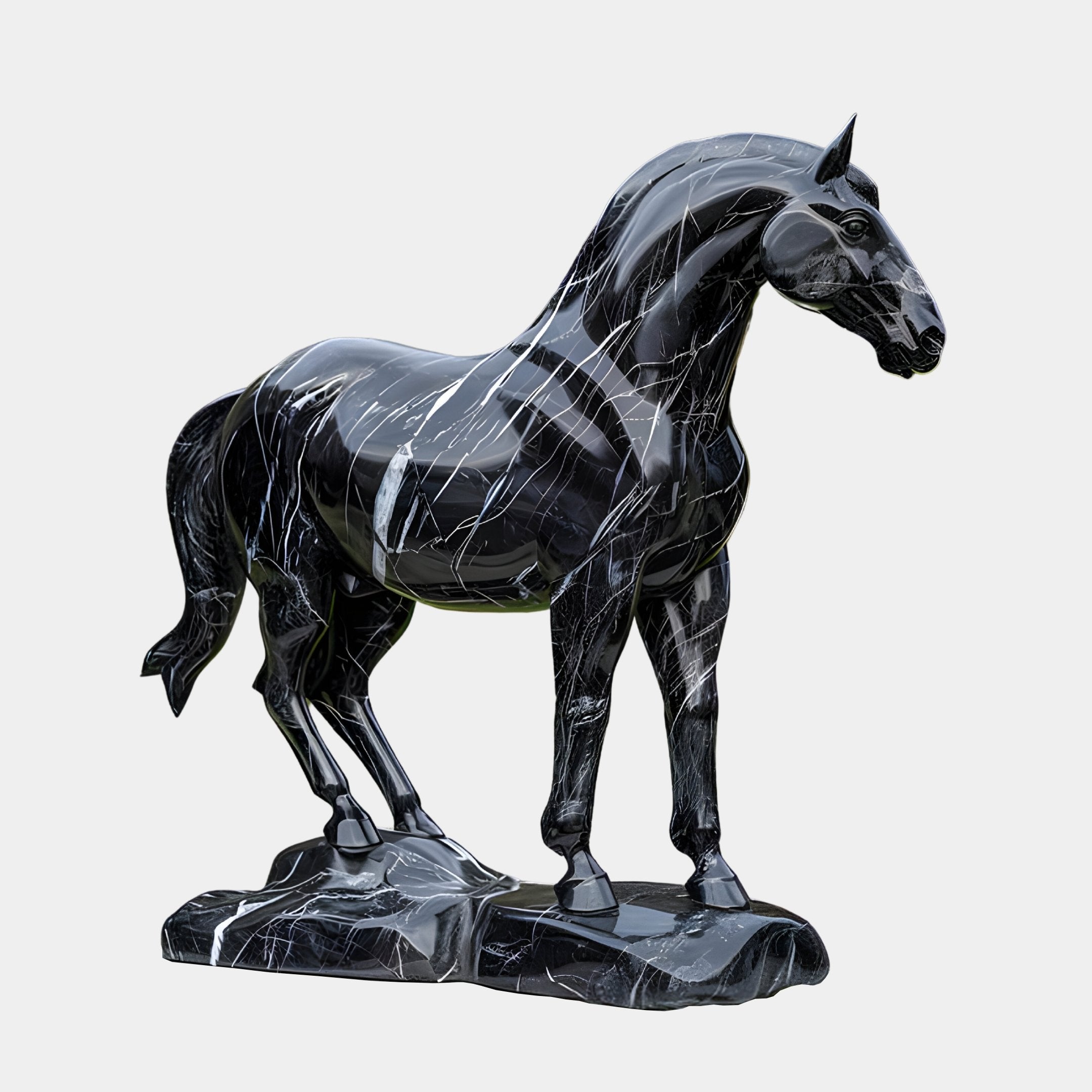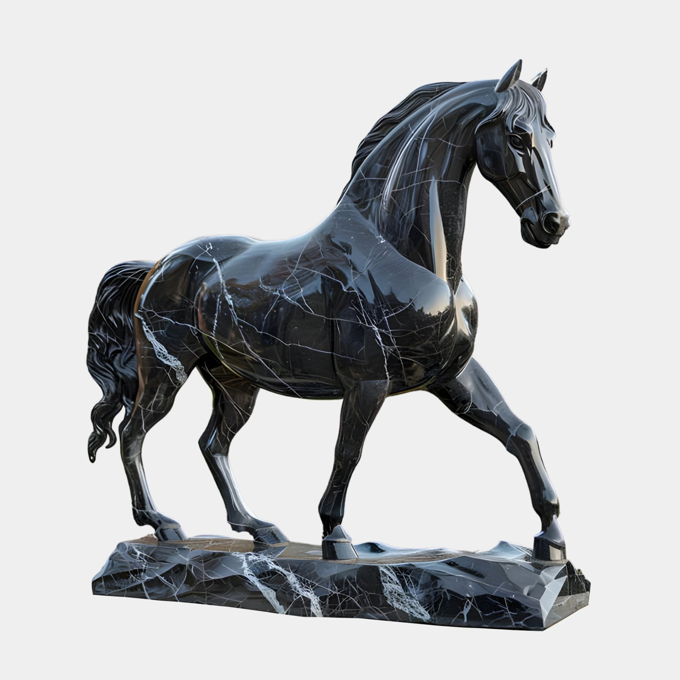 Sculpted Horse Black Marble Outdoor Sculpture - 200cm