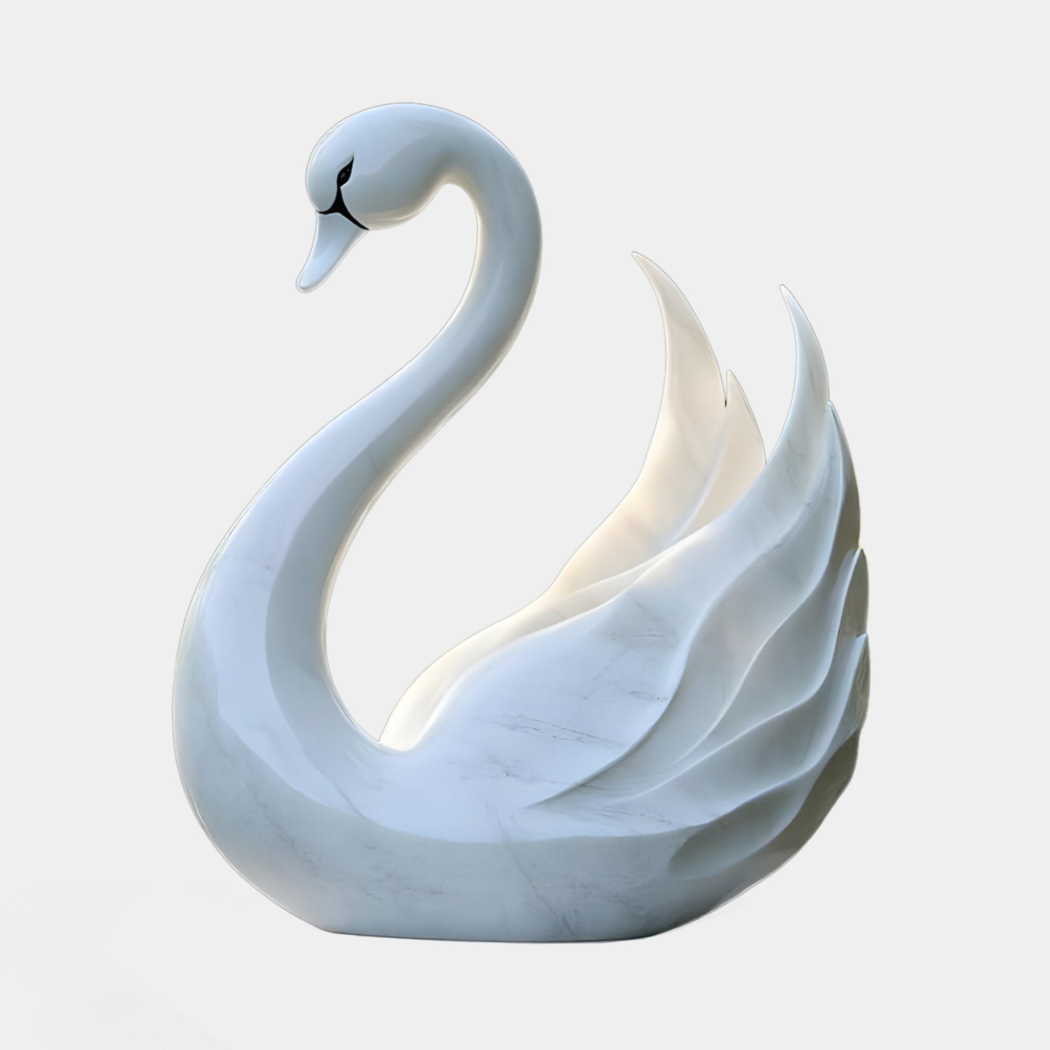 Serene Swan White Marble Outdoor Sculpture - 100cm