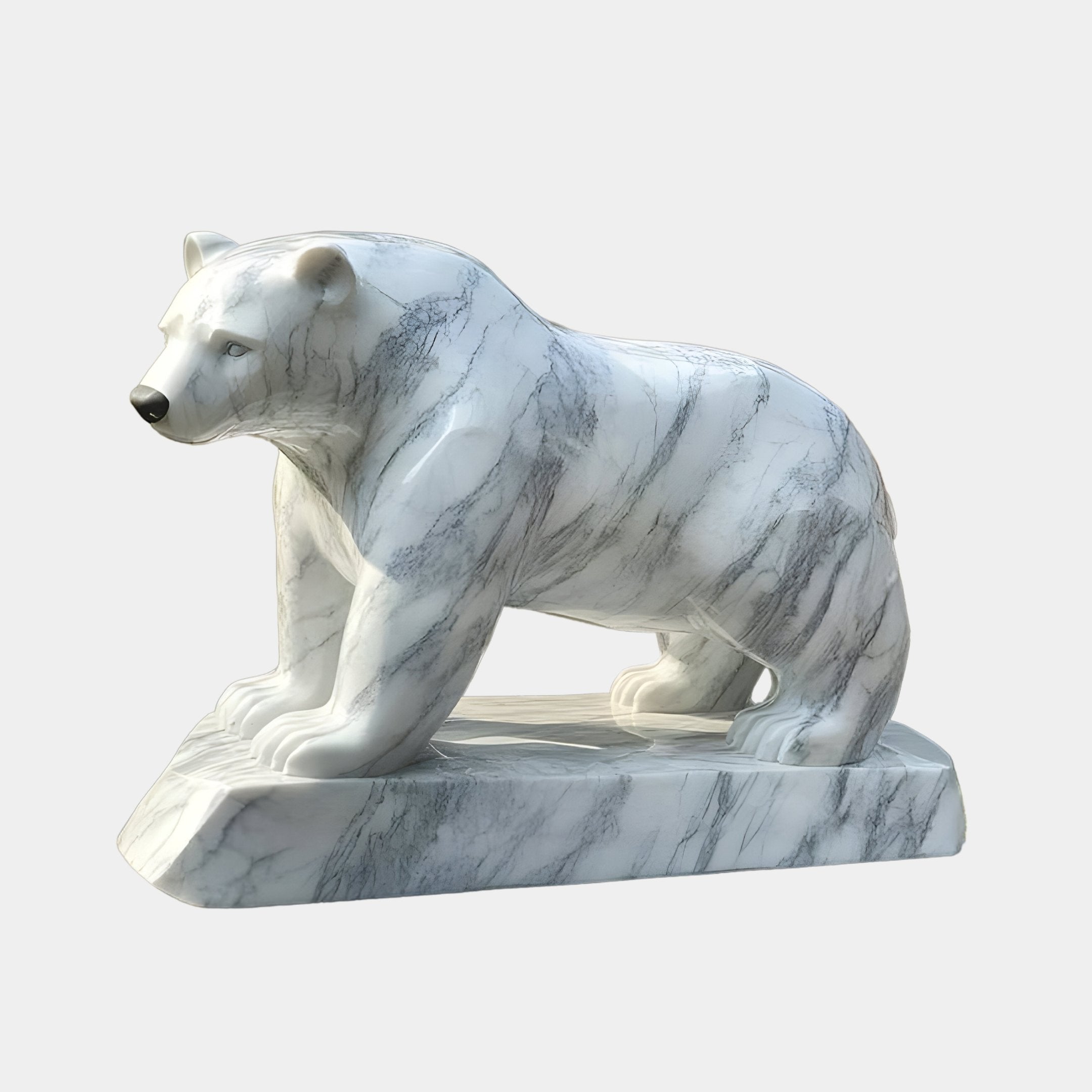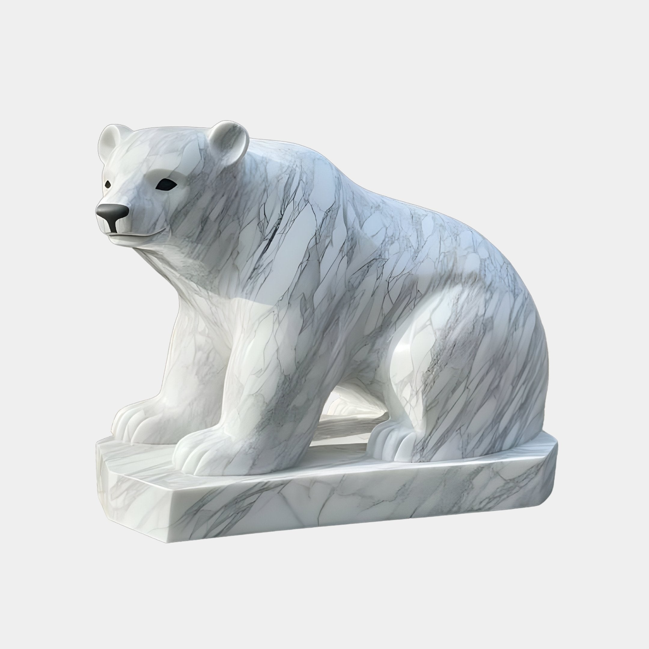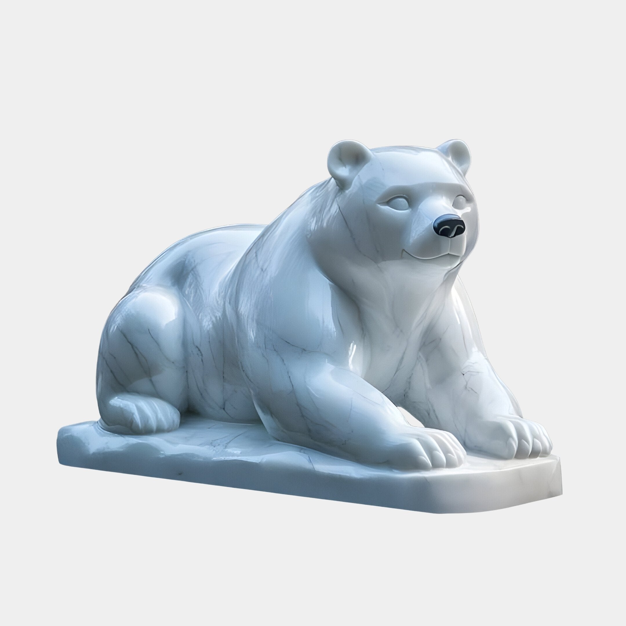 Polar Bear White Marble Outdoor Sculpture - 50cm