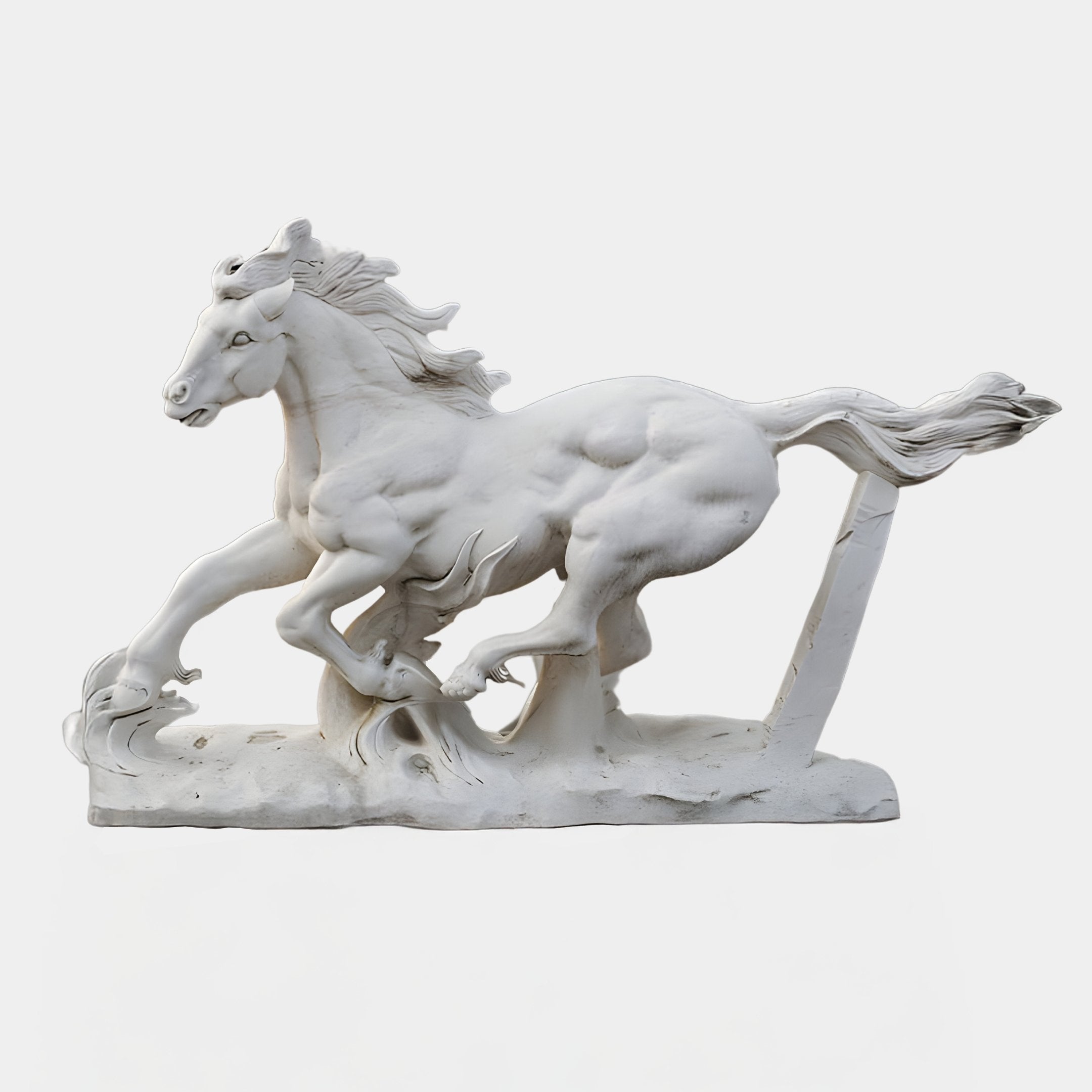 Running Horse White Marble Outdoor Sculpture - 120cm