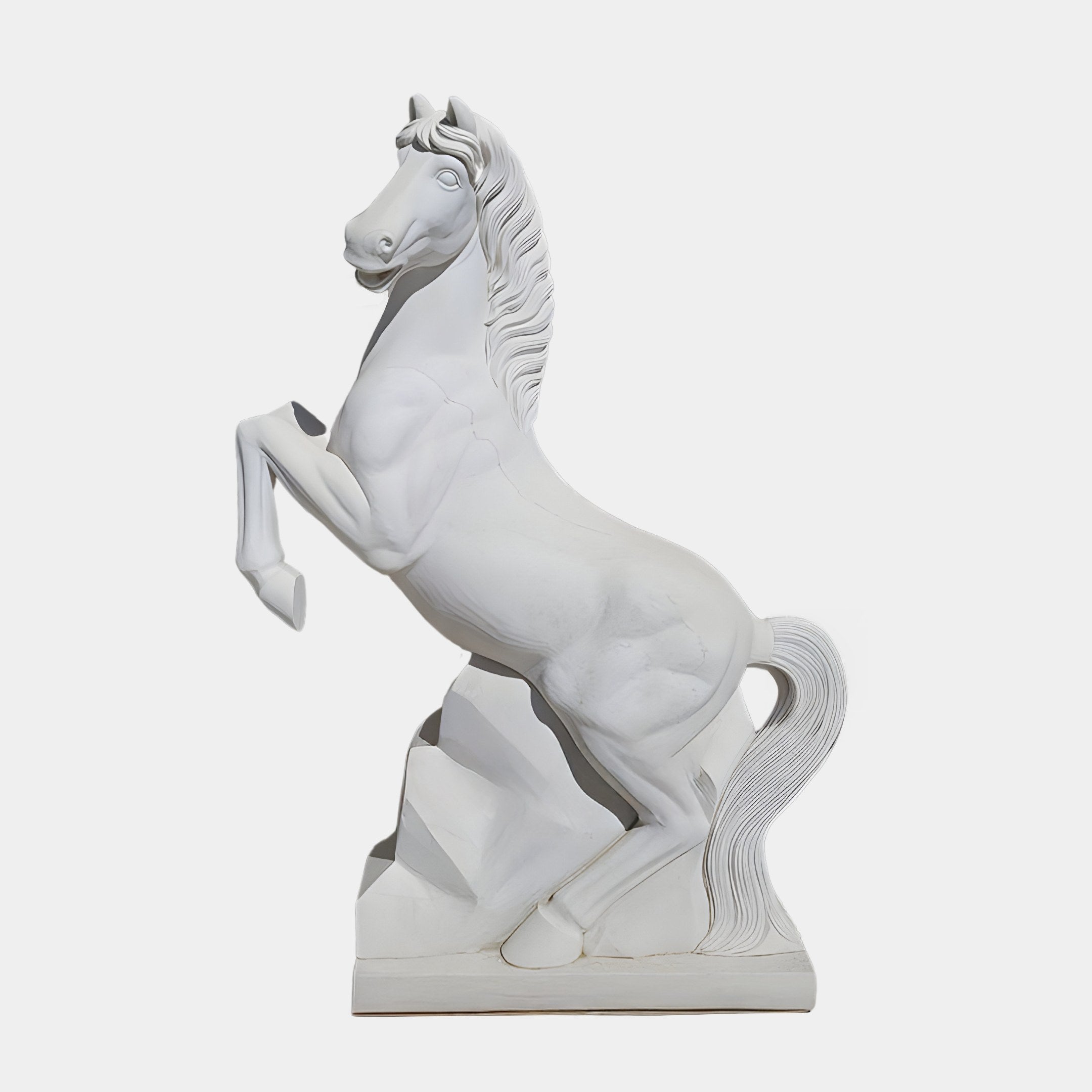 Rearing Horse White Marble Outdoor Sculpture - 200cm