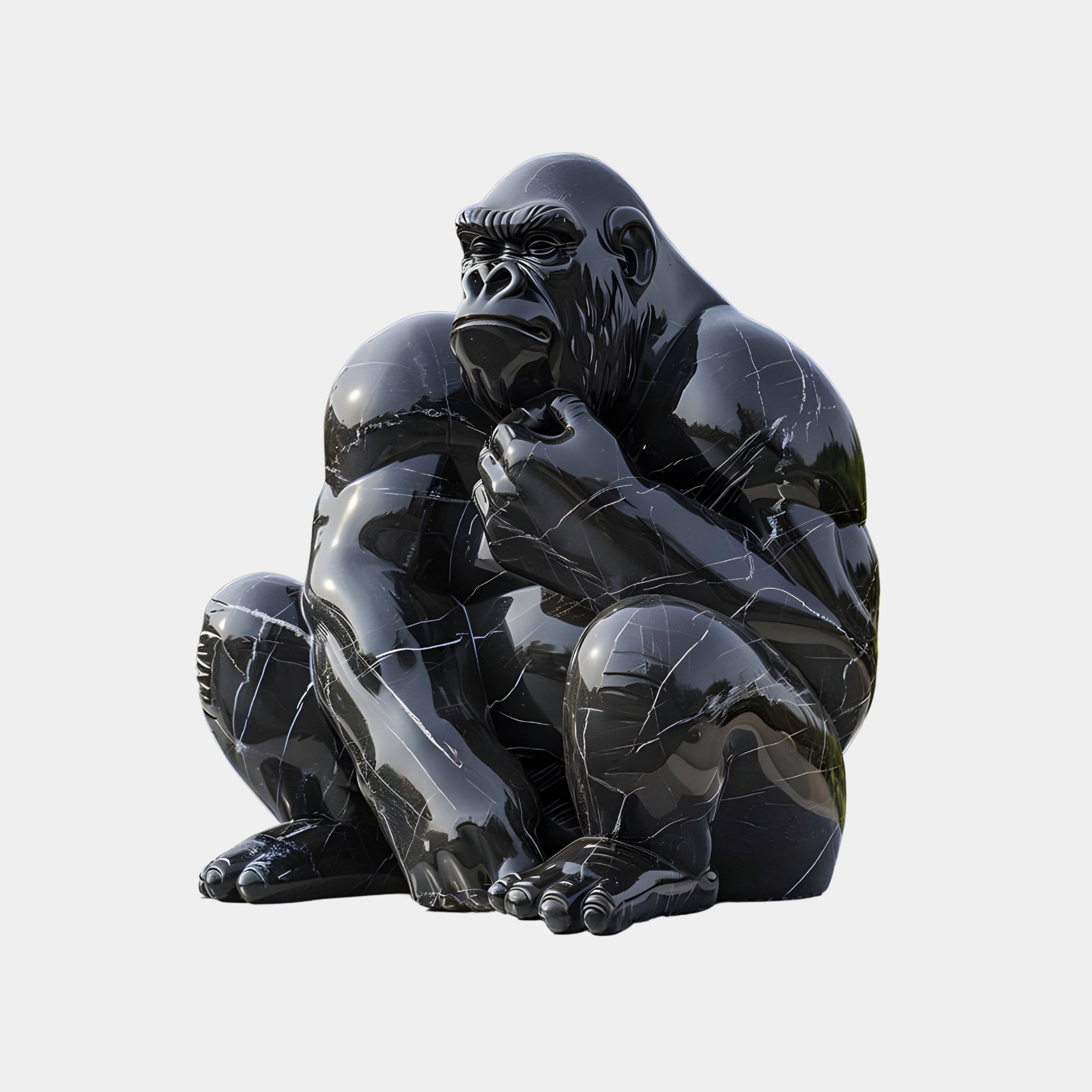 Ebony Watchful Gorilla Marble Outdoor Sculpture - 80cm