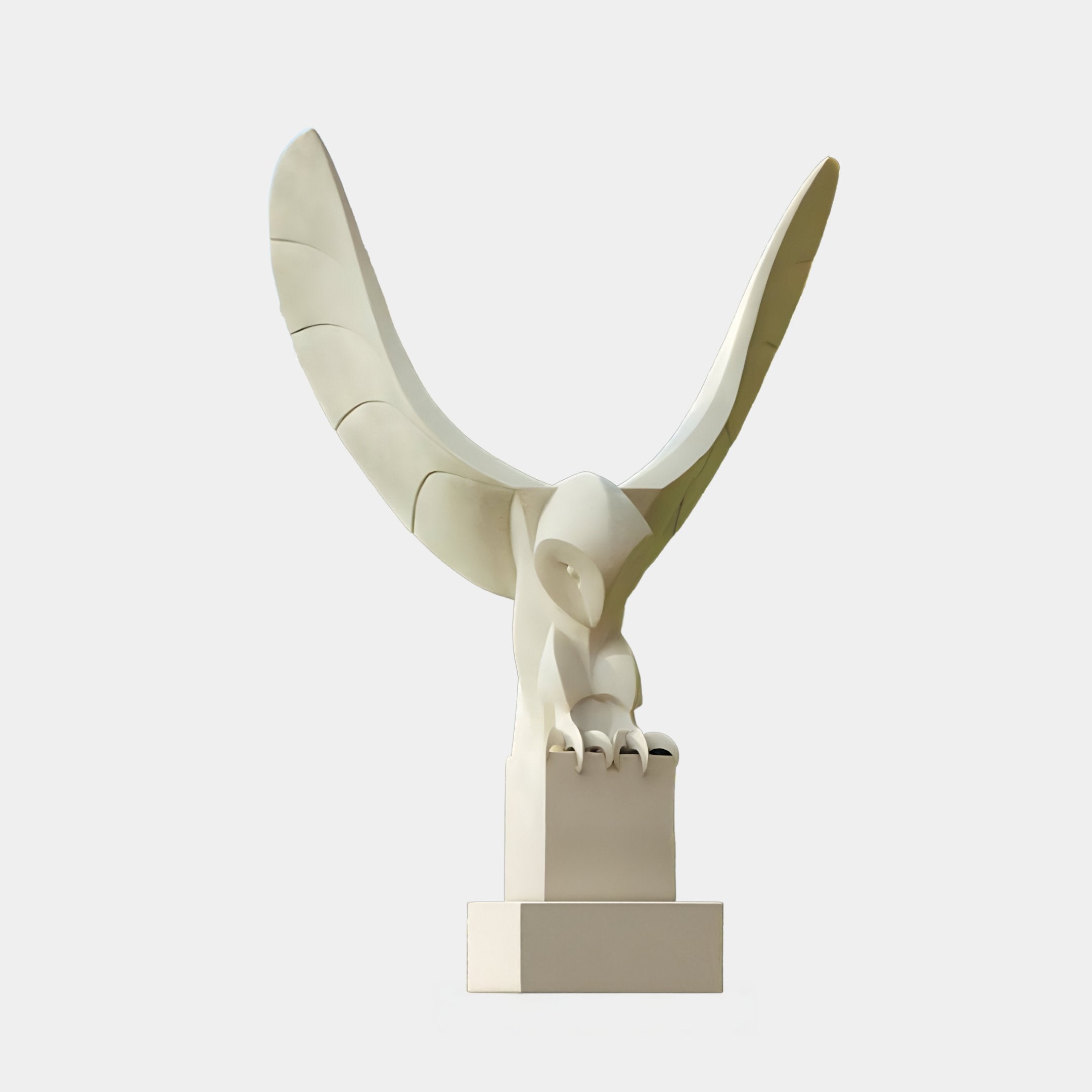 Swooping Arc Owl Marble Outdoor Sculpture - 120cm