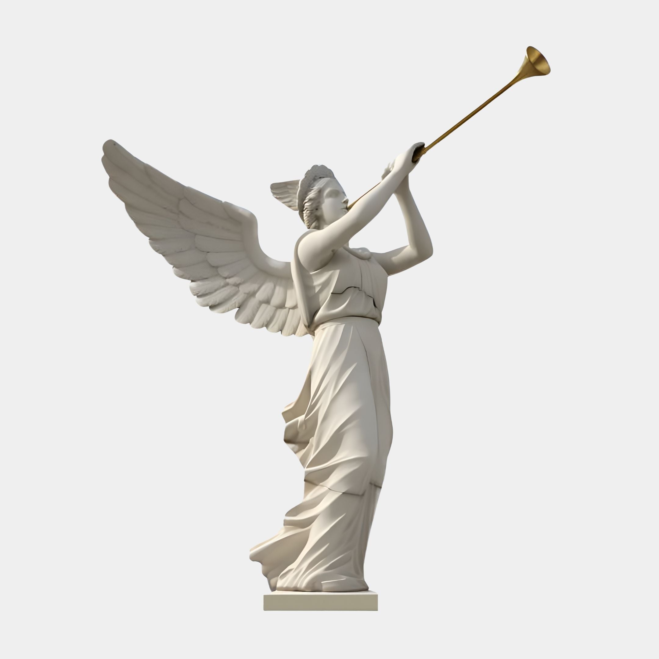 Trumpeting Herald Angel Marble Outdoor Sculpture - 300cm
