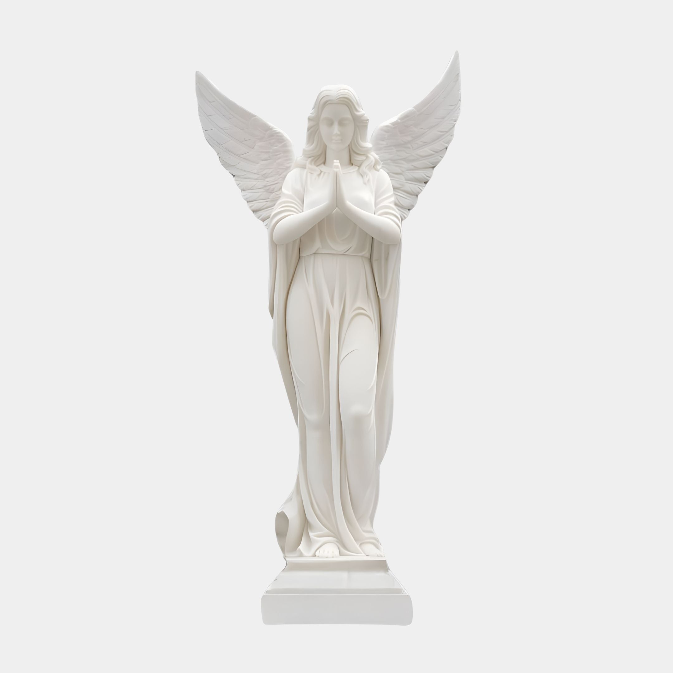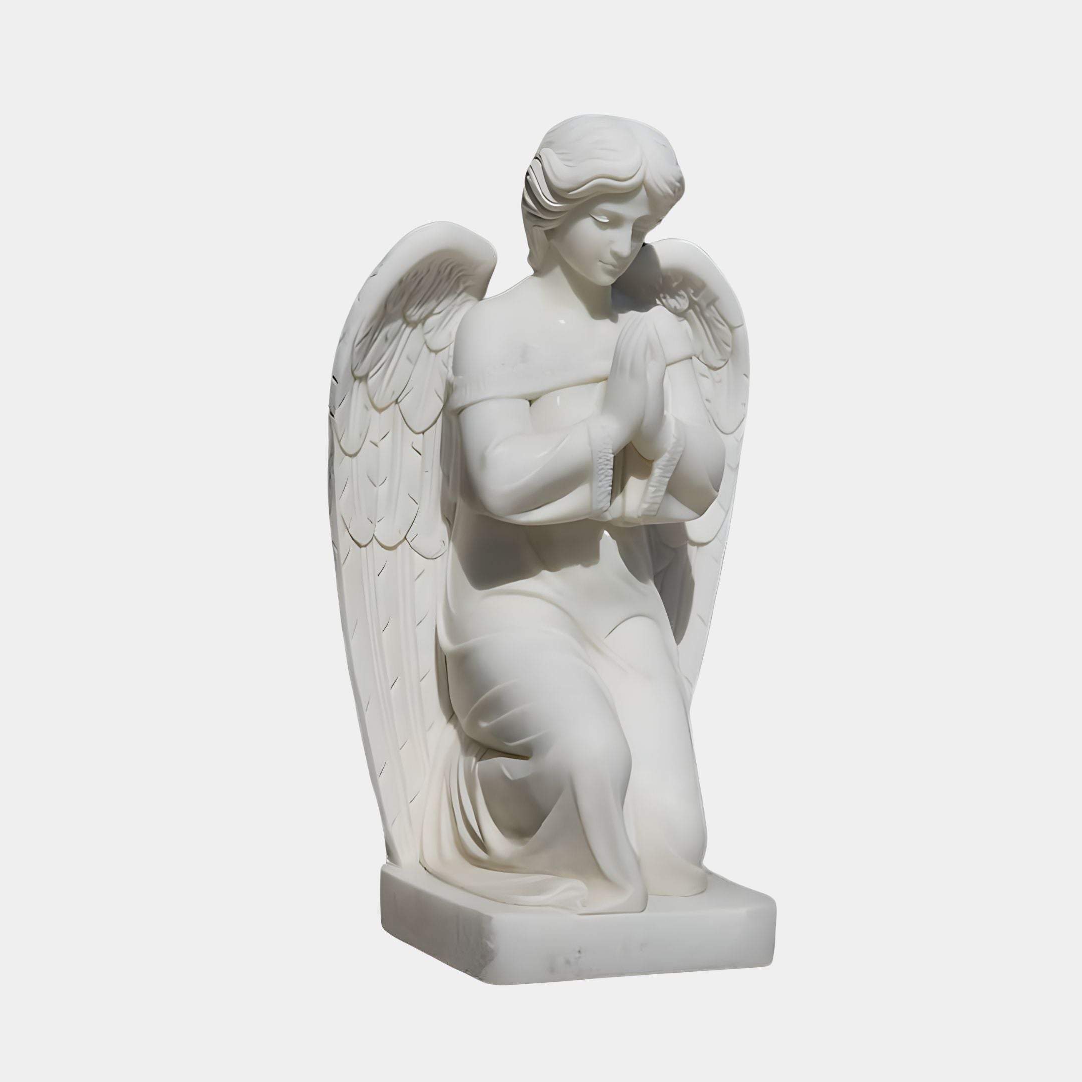 Kneeling Prayer Angel Marble Outdoor Sculpture - 120cm