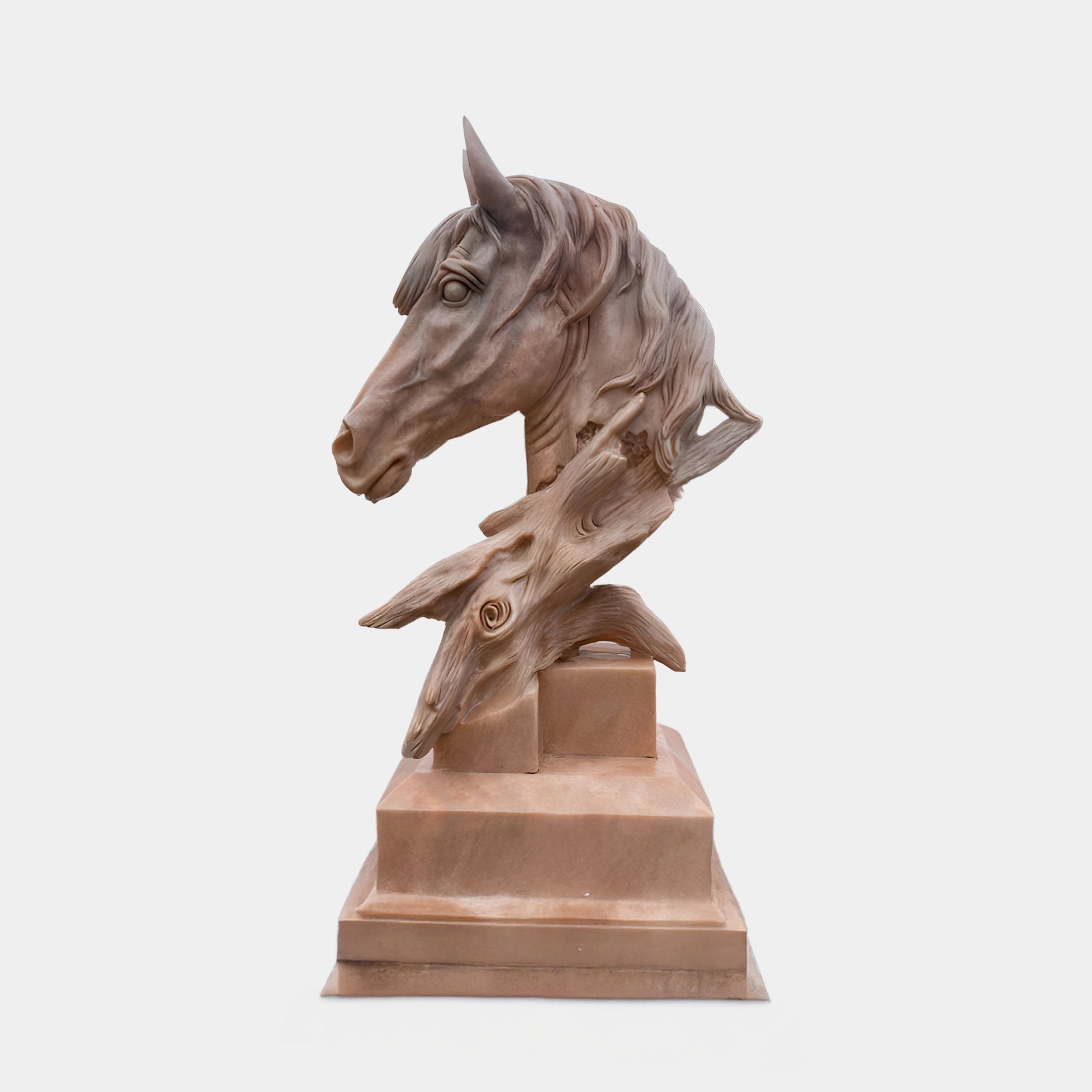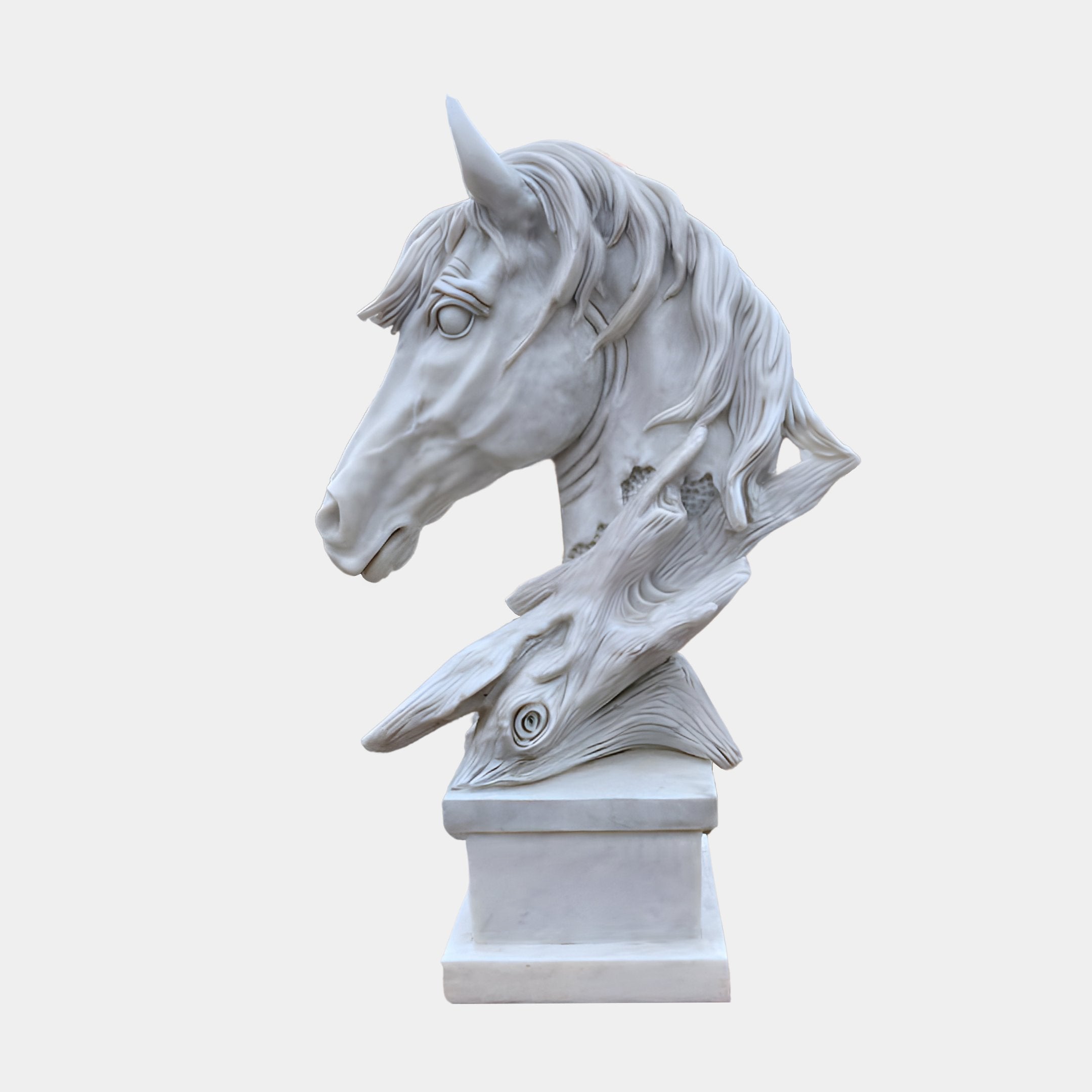 Dynamic Horse Head Marble Outdoor Sculpture - 100cm
