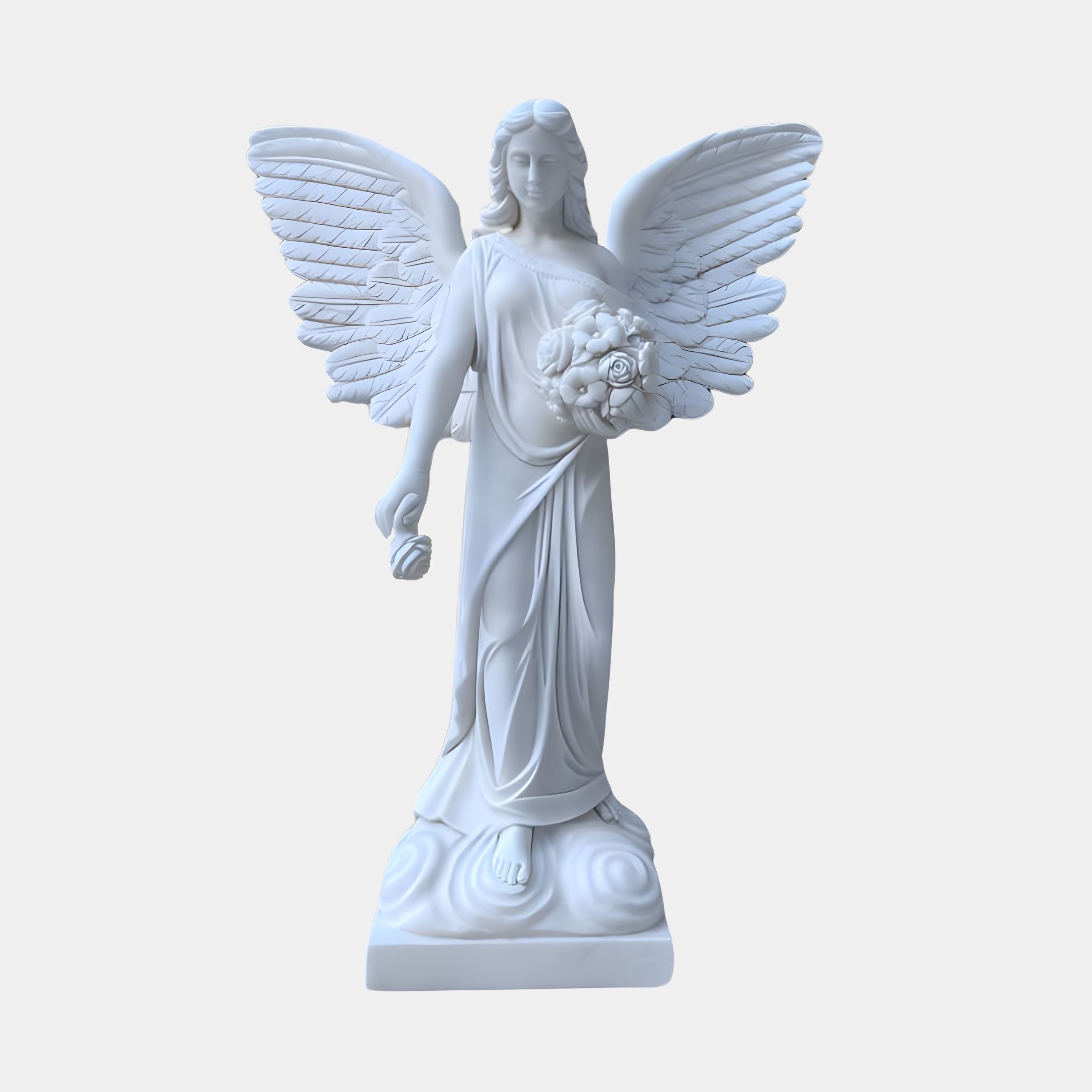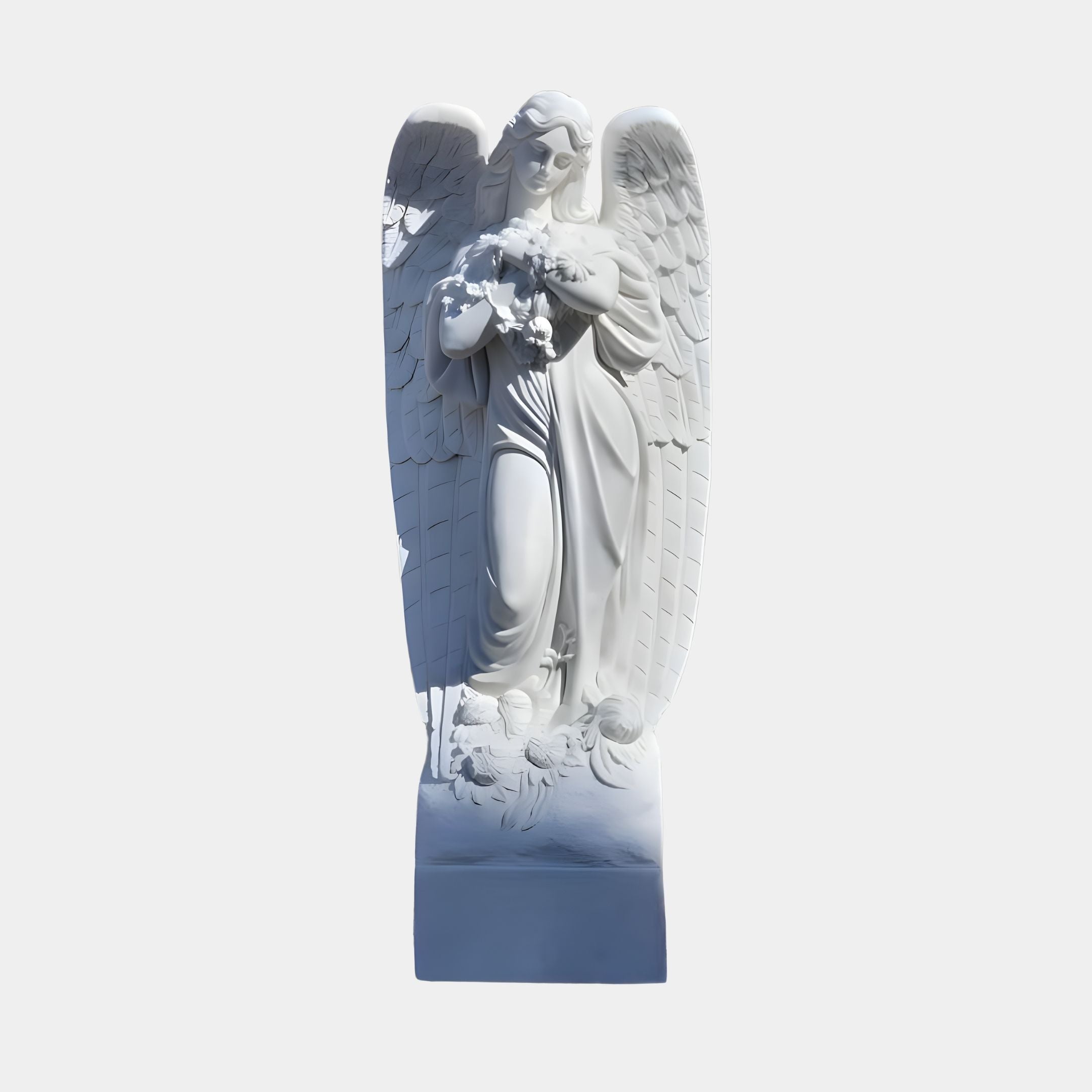 Floral Grace Angel Marble Outdoor Sculpture - 220cm