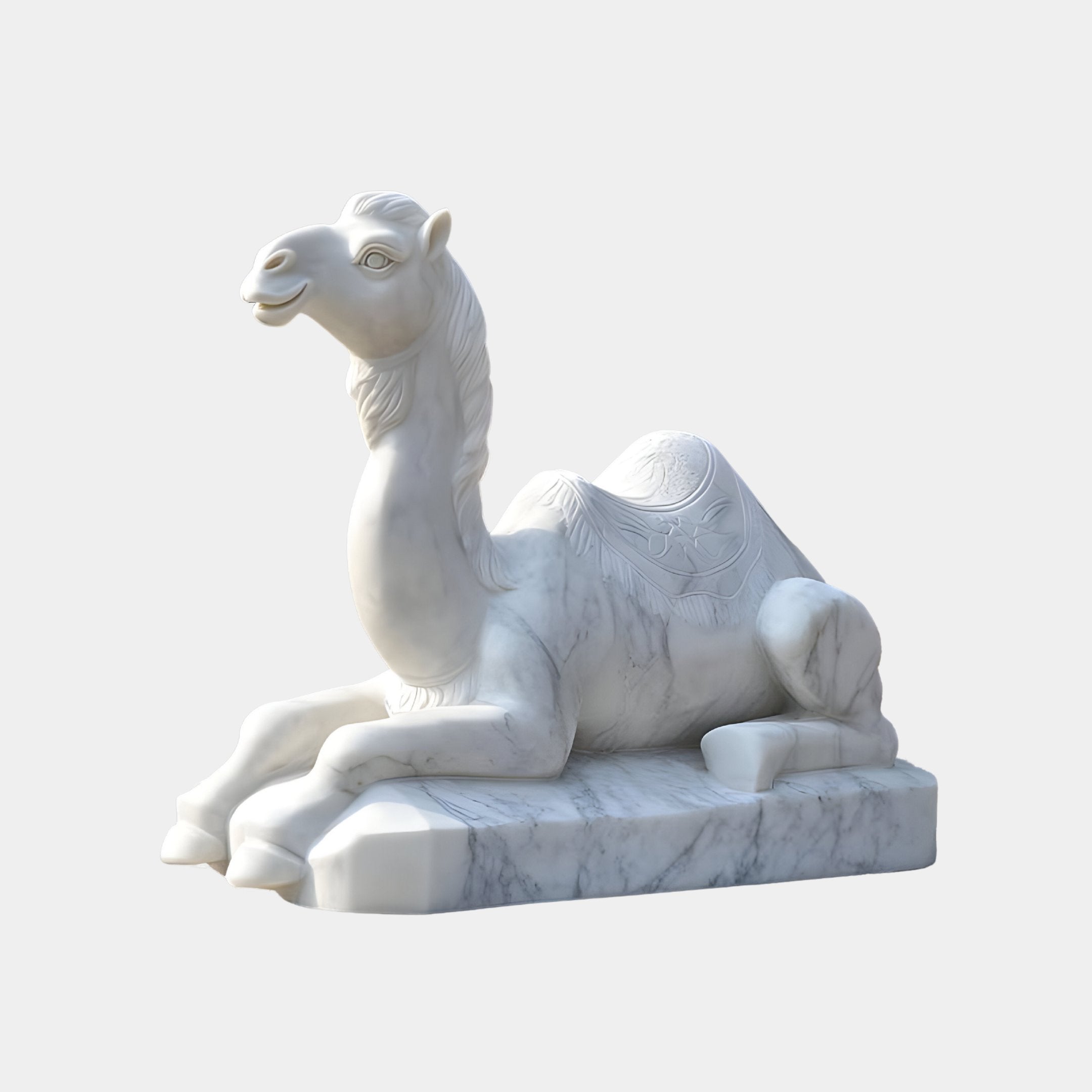 Ornate Lying Camel Marble Outdoor Sculpture - 150cm