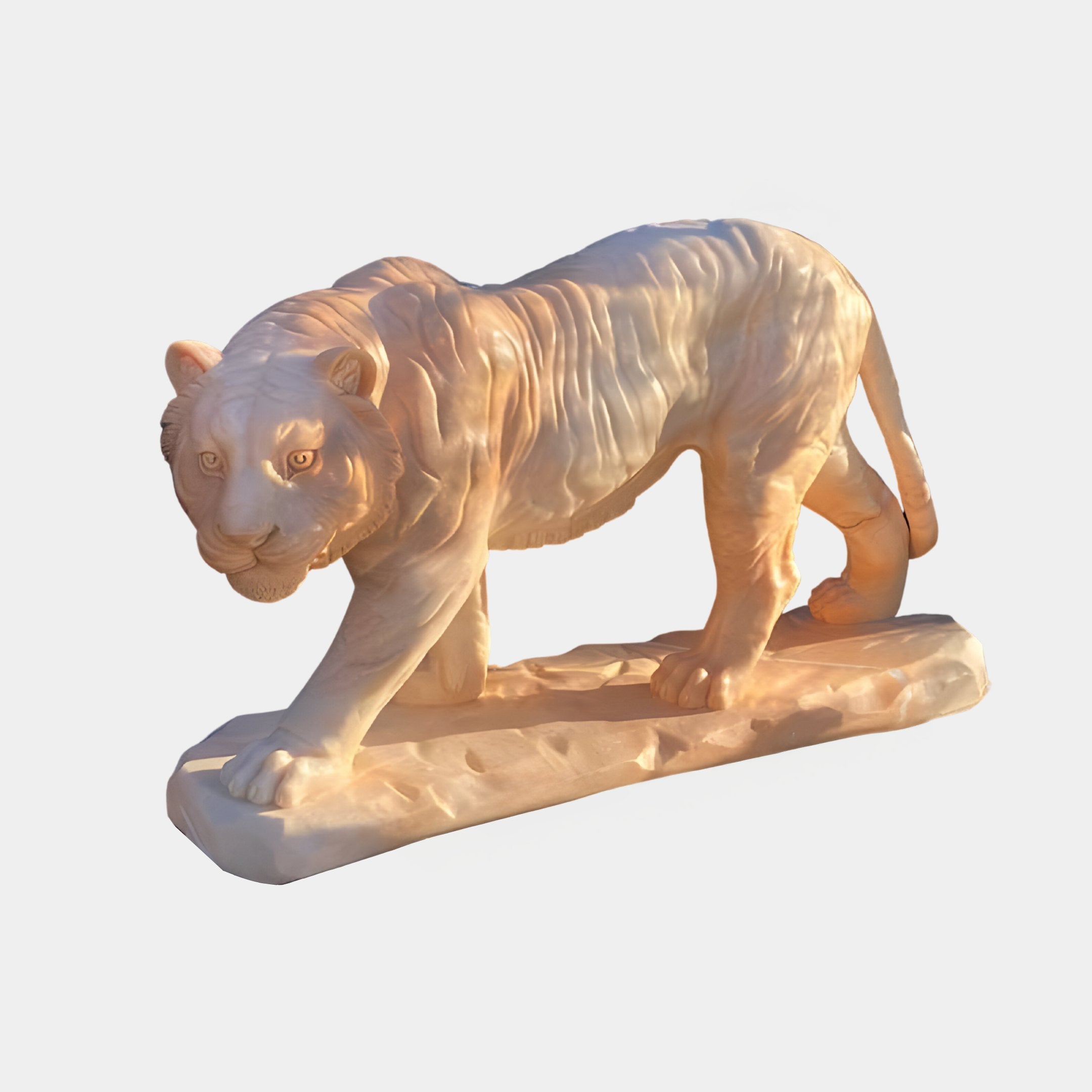 Striding Tiger Yellow Marble Outdoor Sculpture - 60cm