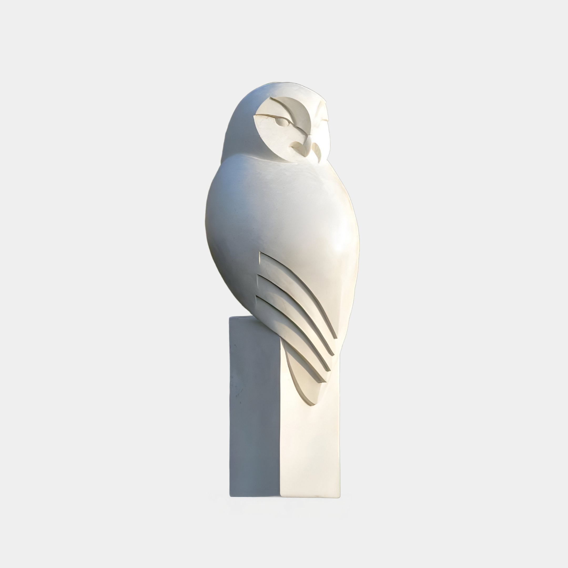 Minimalist Perched Owl Marble Outdoor Sculpture - 40cm