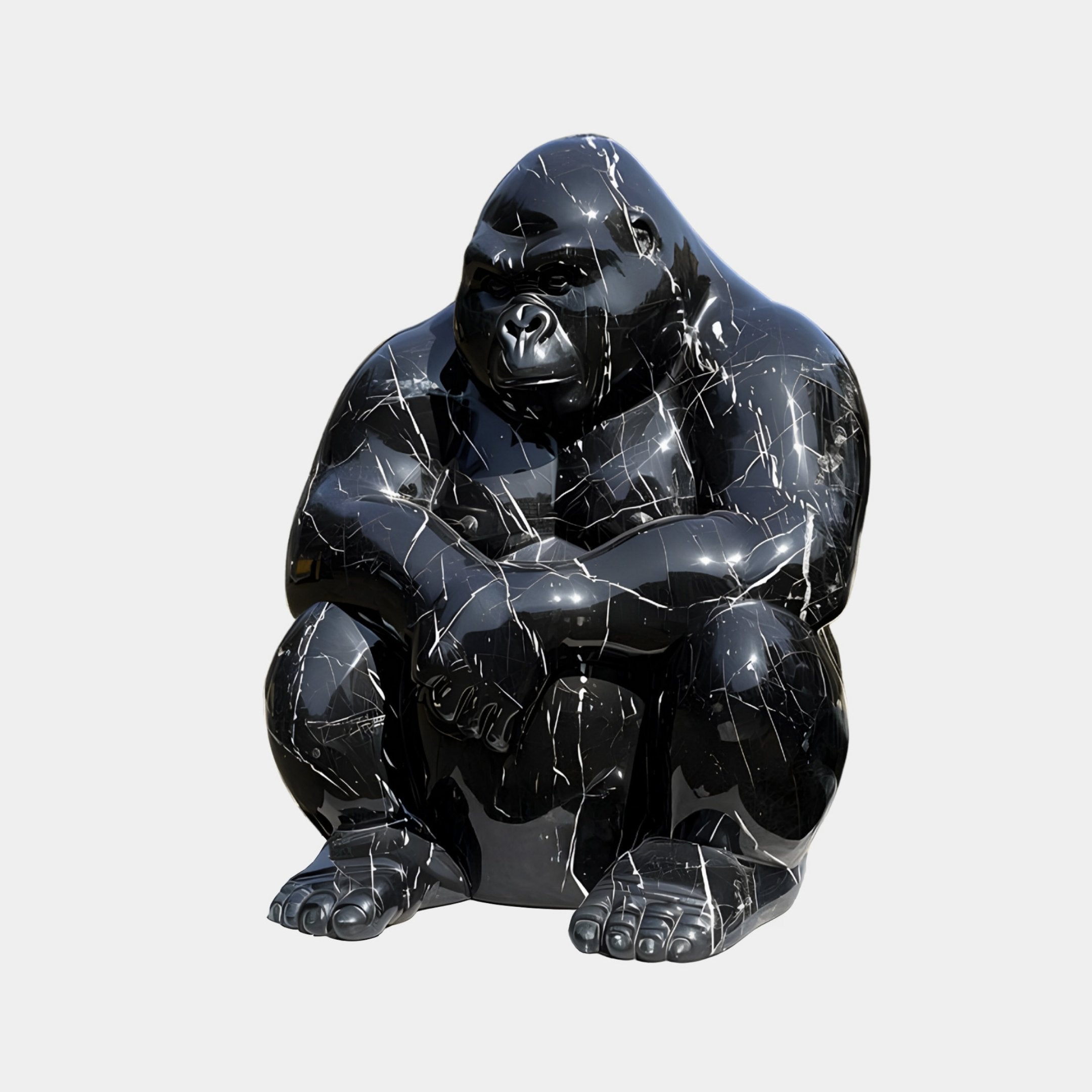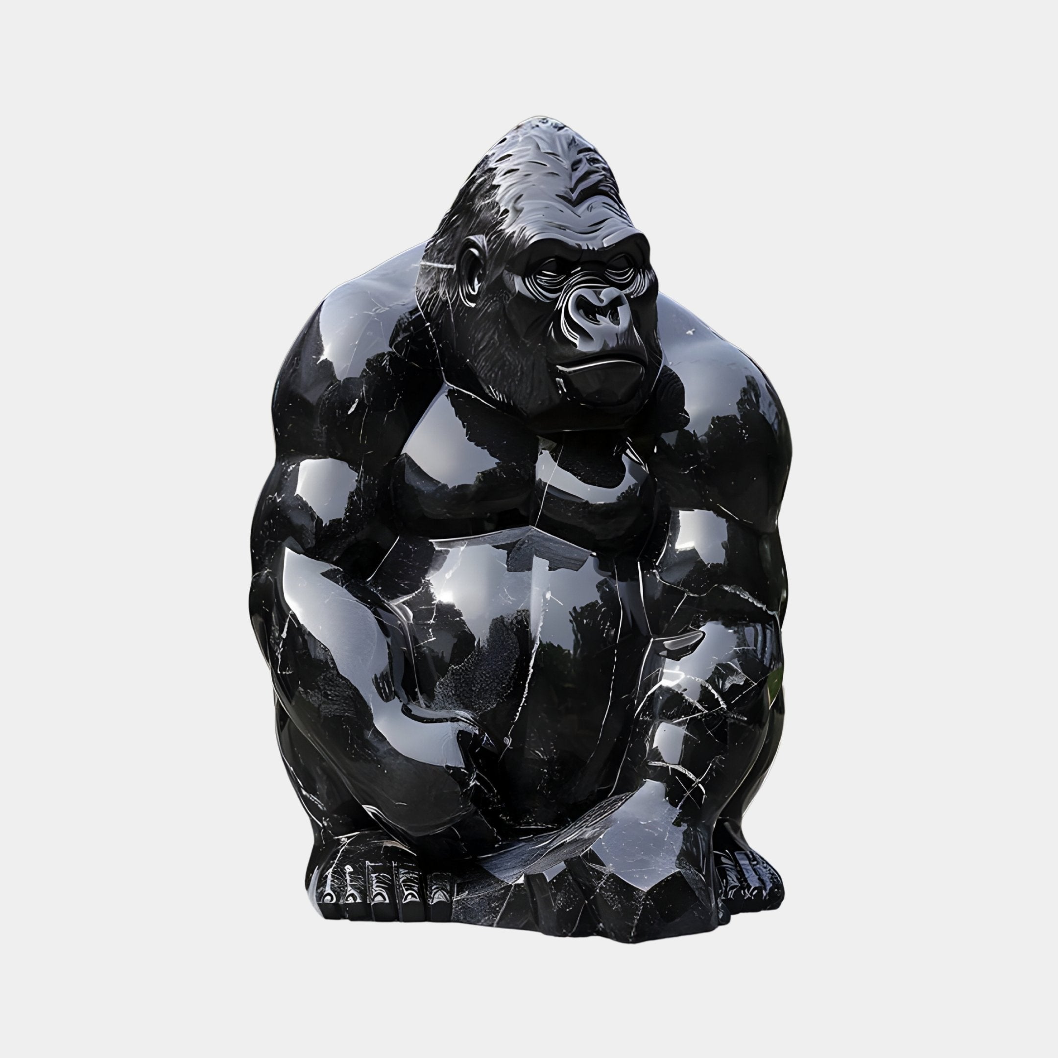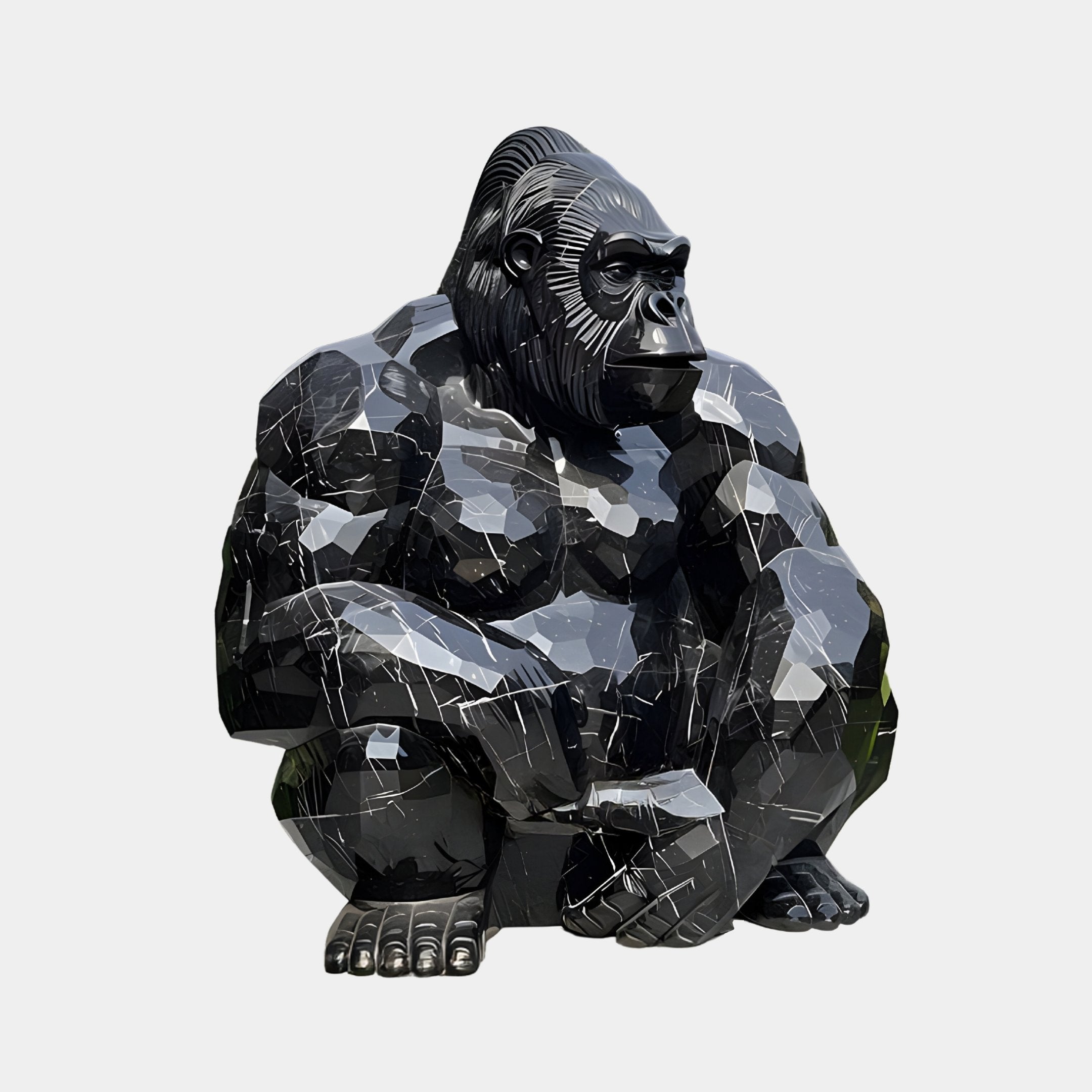 Midnight Seated Gorilla Marble Outdoor Sculpture - 60cm