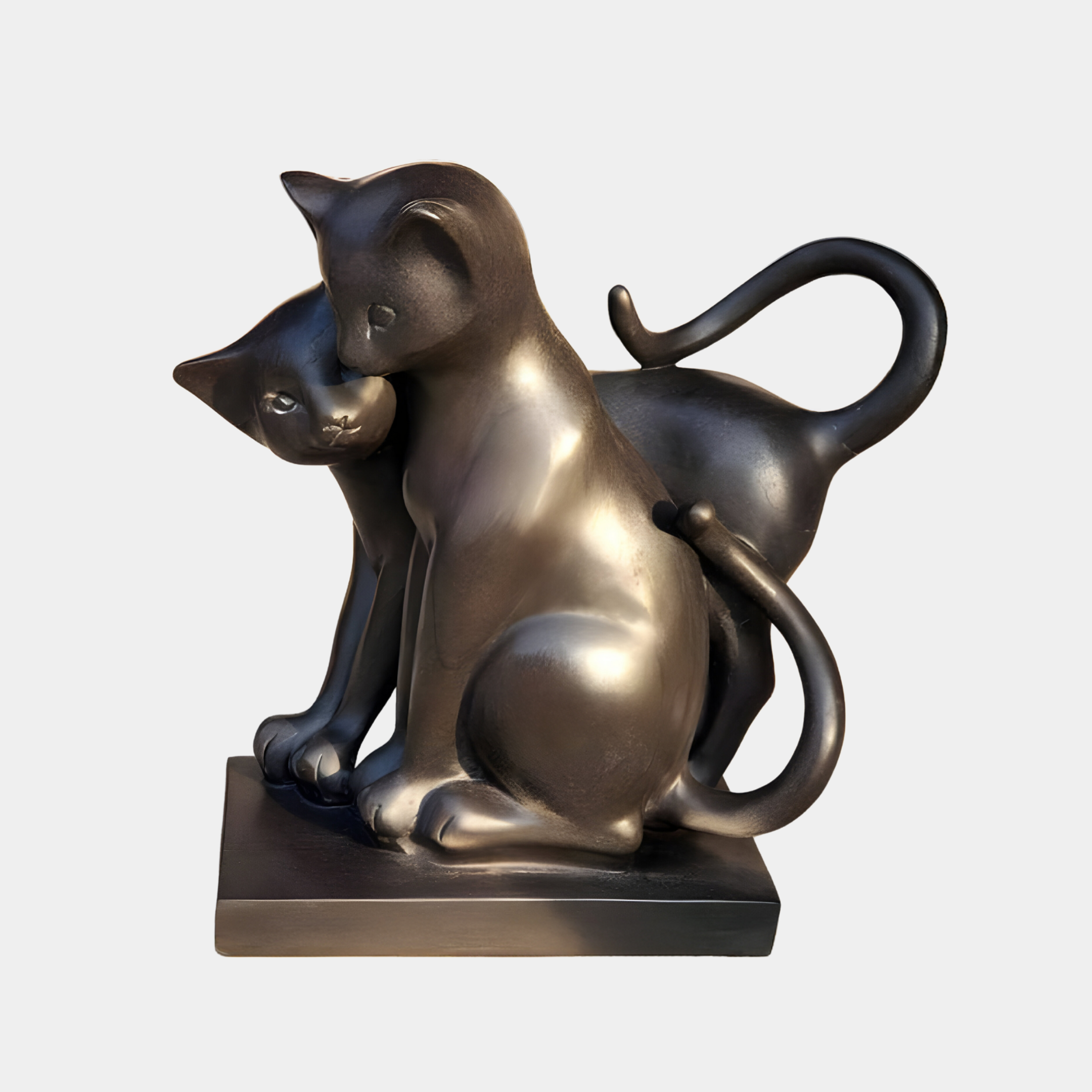 Affectionate Cat Pair Marble Outdoor Sculpture - 40cm