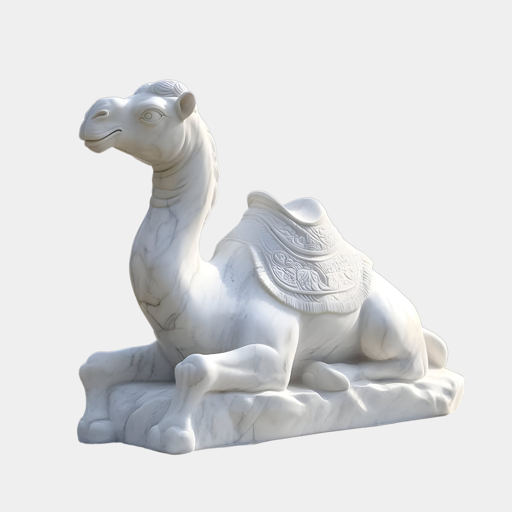 Saddled Lying Camel Marble Outdoor Sculpture - 150cm