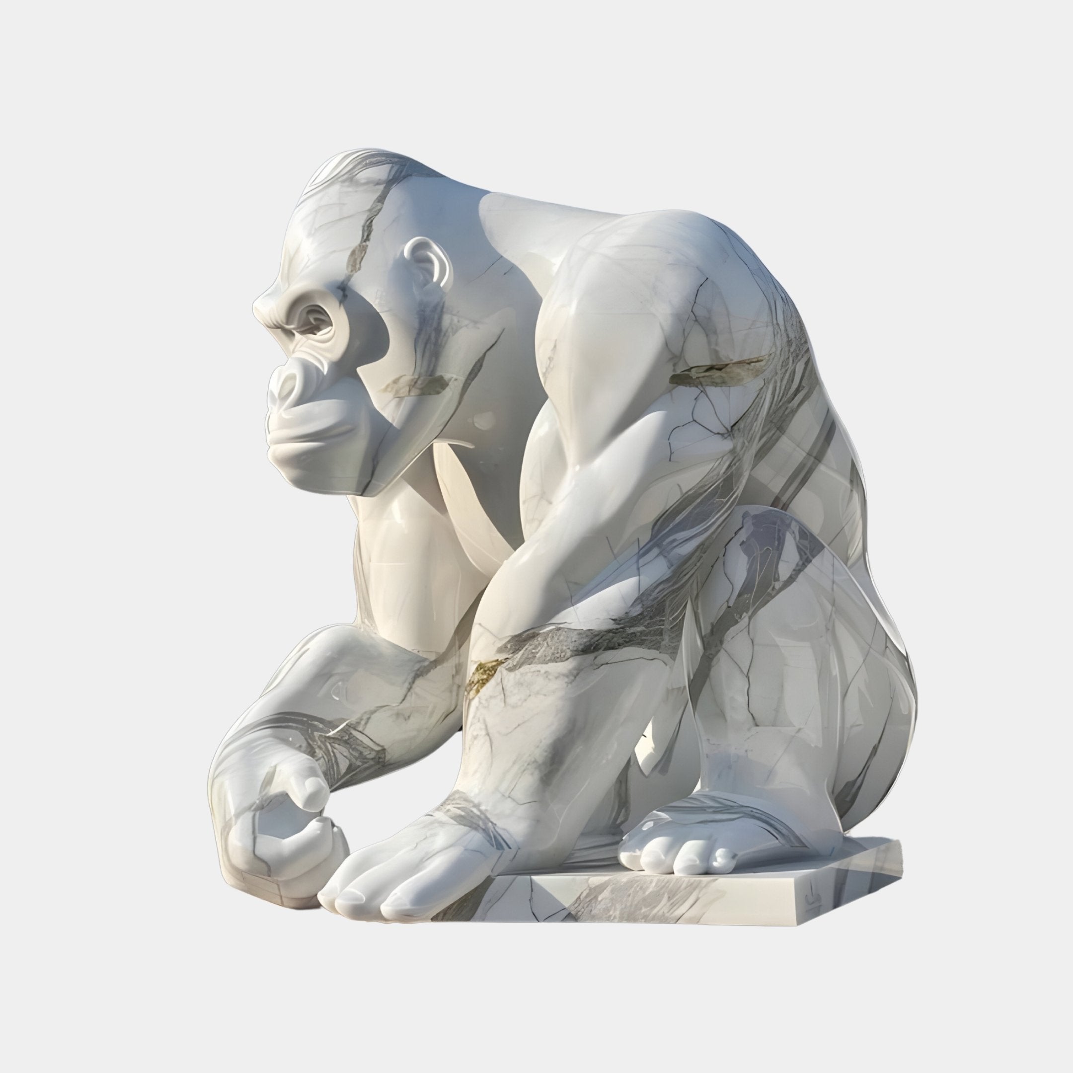 Crouching Gorilla Marble Outdoor Sculpture - 150cm
