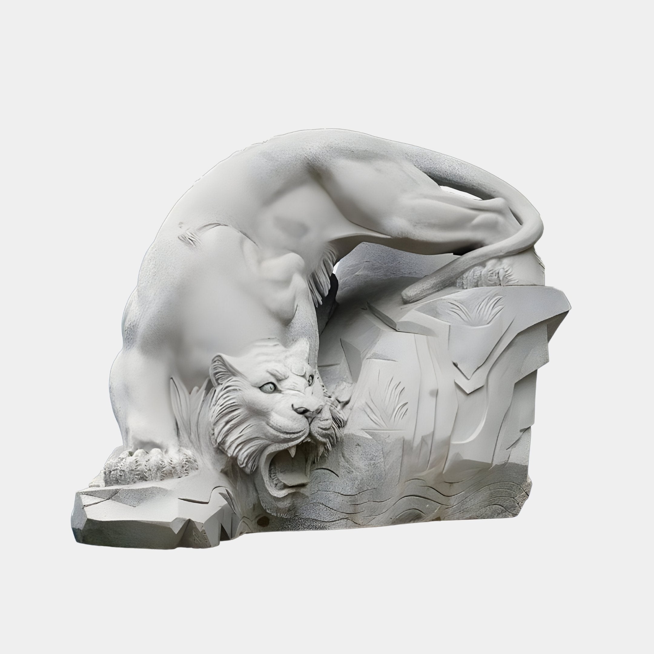 Roaring Rock Tiger Marble Outdoor Sculpture - 150cm