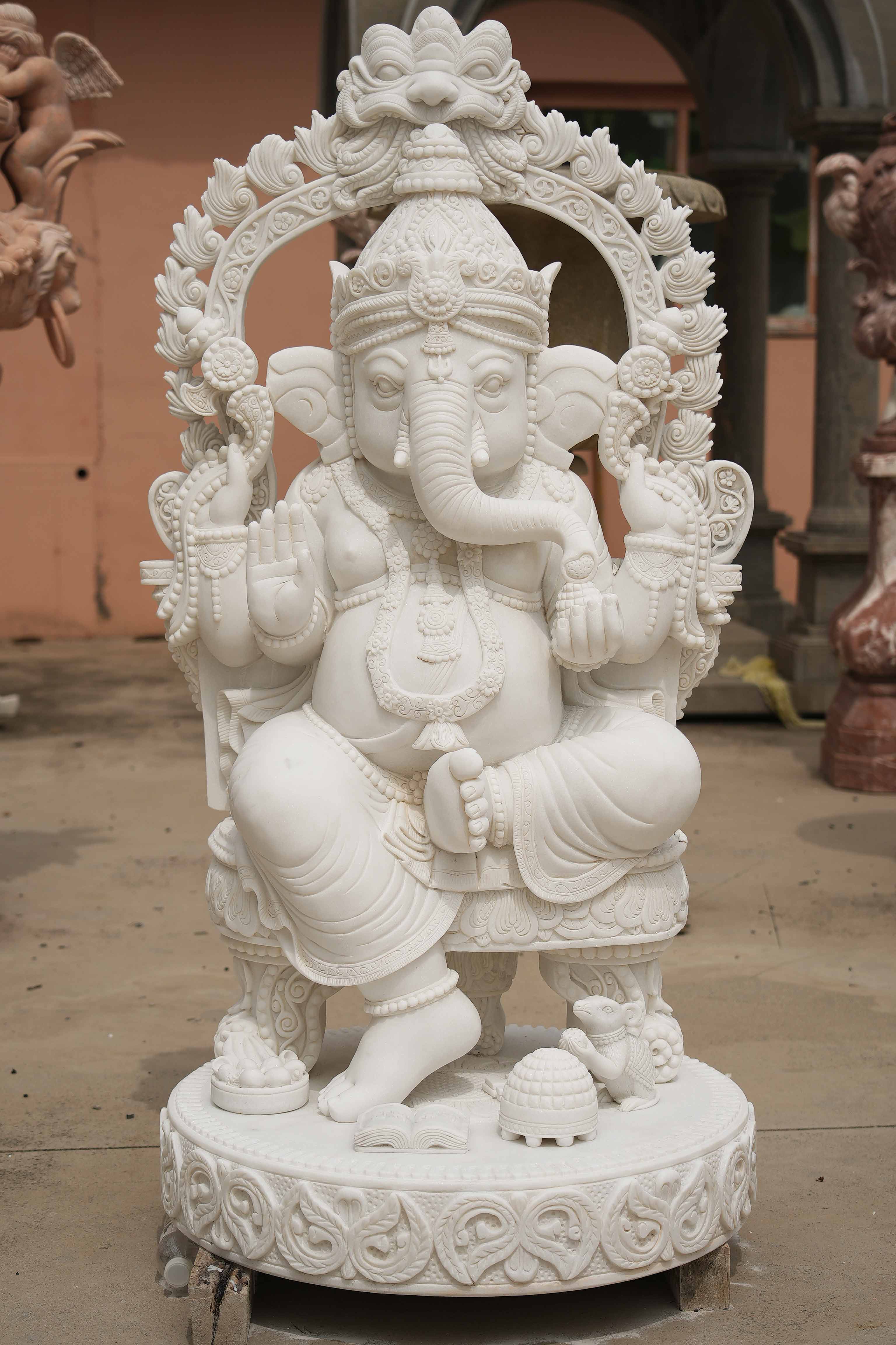 This White Marble Ganesha Sculpture is meticulously crafted to bring elegance and spirituality to any space. Lord Ganesha, known as the remover of obstacles, is depicted in a serene pose that embodies wisdom and prosperity. The smooth white marble finish adds a sense of purity, making it a perfect centerpiece for a home altar, meditation area, or any indoor space that seeks a peaceful and uplifting atmosphere.