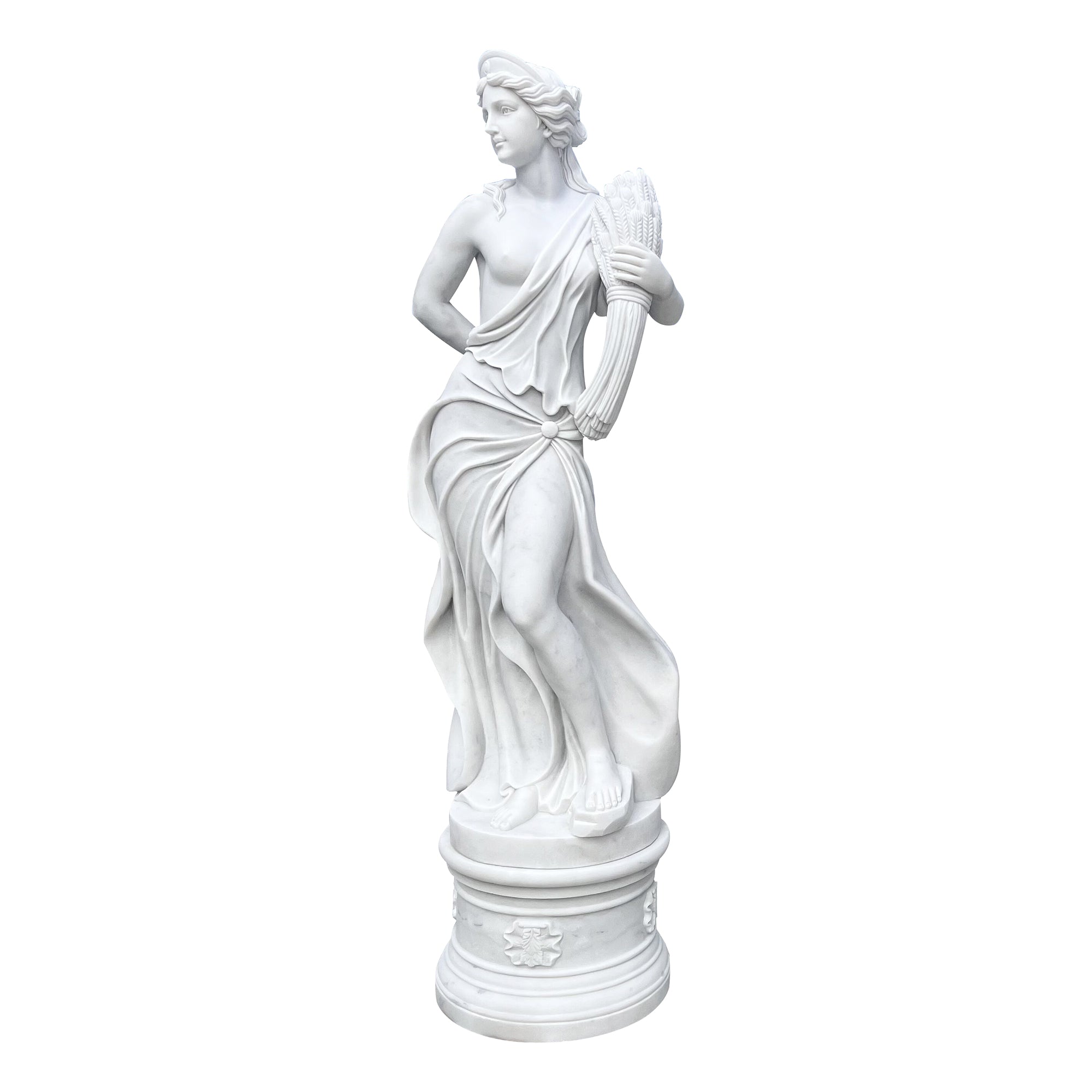 Hand-Carved Statuary Marble Greek Summer Goddess Statue - The Four Seasons Garden Statues FM-079 (Including Pedestal)