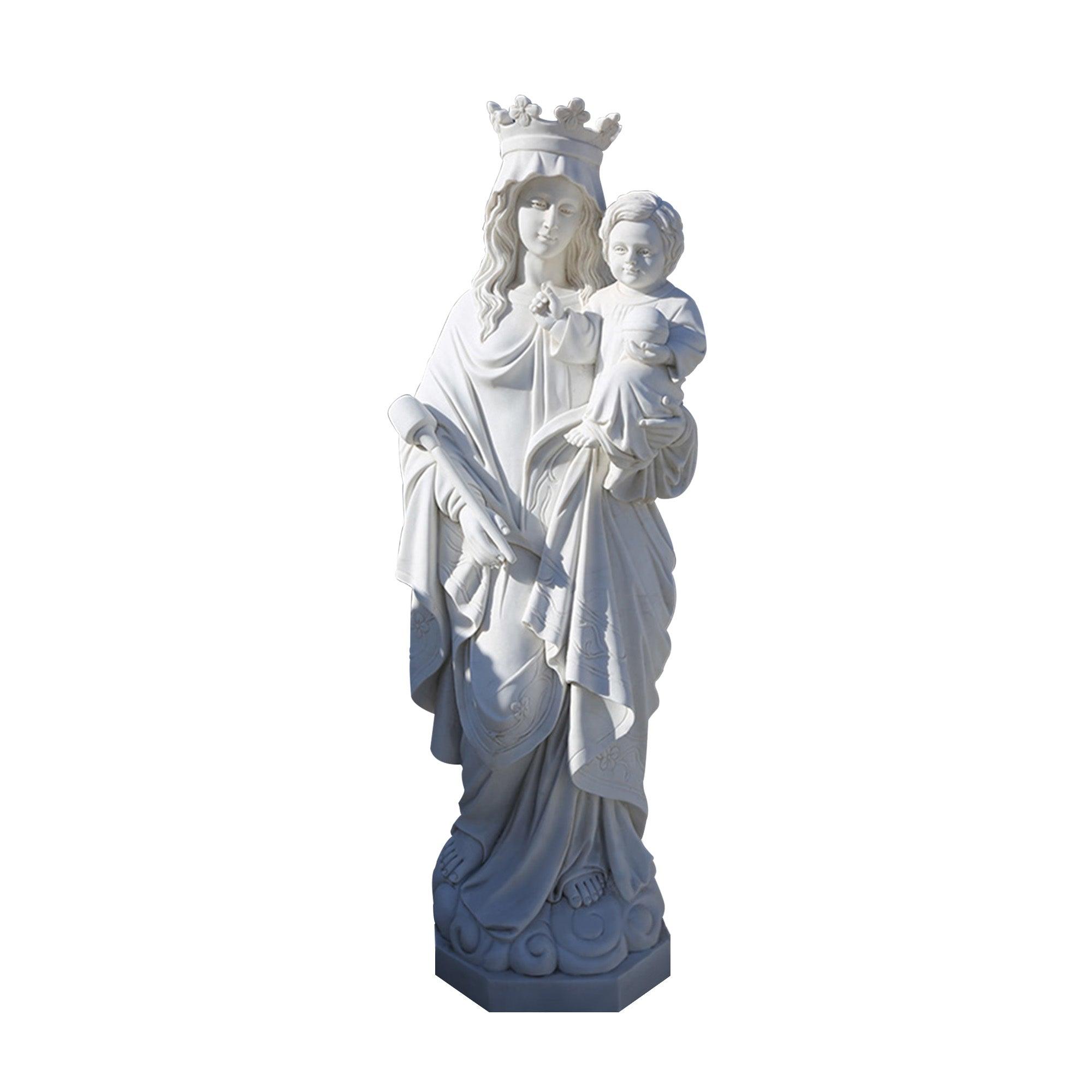Outdoor Sculpture White Marble Virgin Mary and Child Jesus statues FM-012