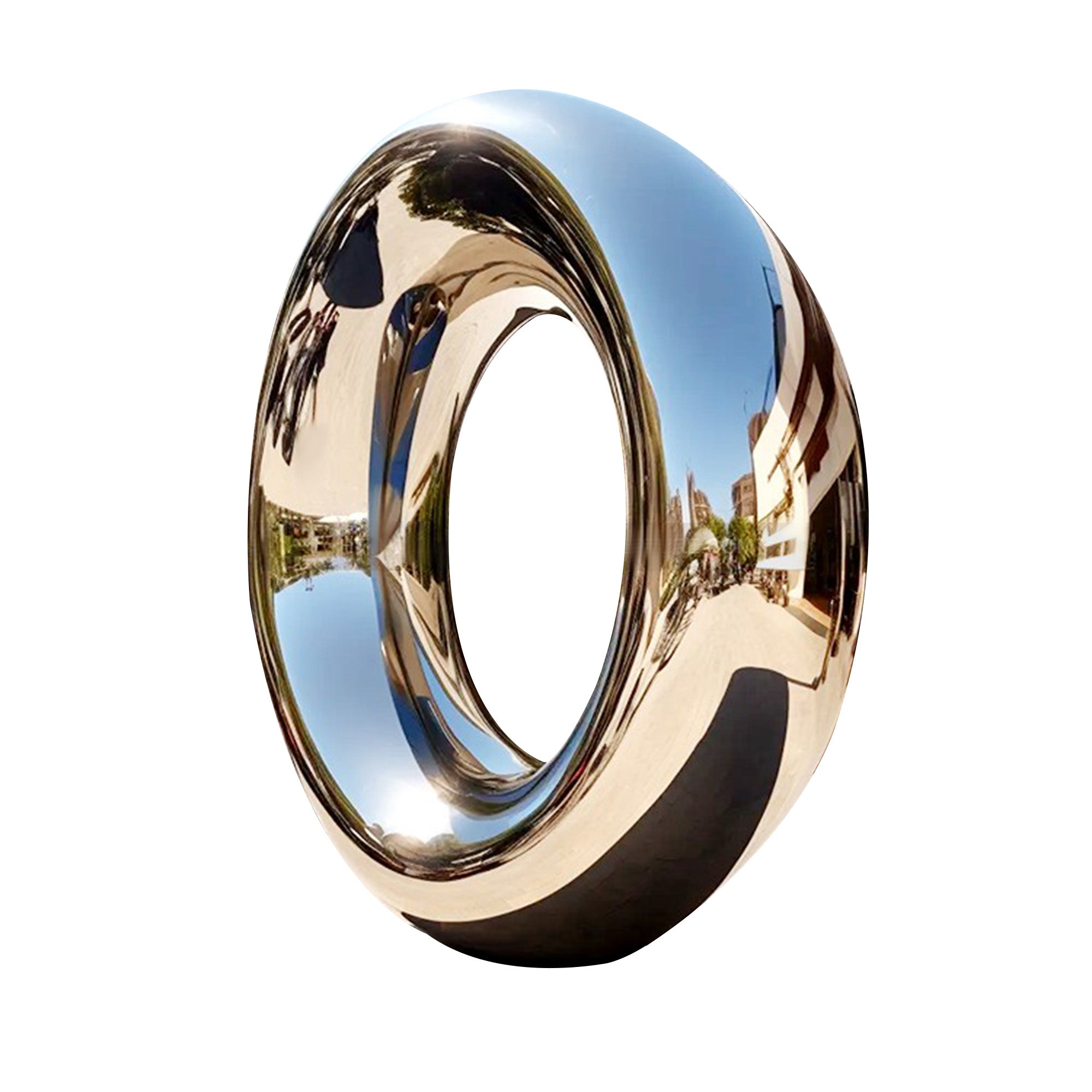This Mirror Polished Stainless Steel Circular Sculpture is a modern, minimalist work of art designed to captivate viewers with its smooth, reflective finish. Its circular form symbolizes unity, continuity, and the infinite, blending seamlessly with its outdoor environment through its highly polished surface. Perfect for installation in public spaces such as parks, plazas, or luxury residential areas, this sculpture enhances the aesthetic appeal of any outdoor setting while offering a dynamic interaction with its surroundings as it mirrors the landscape.
