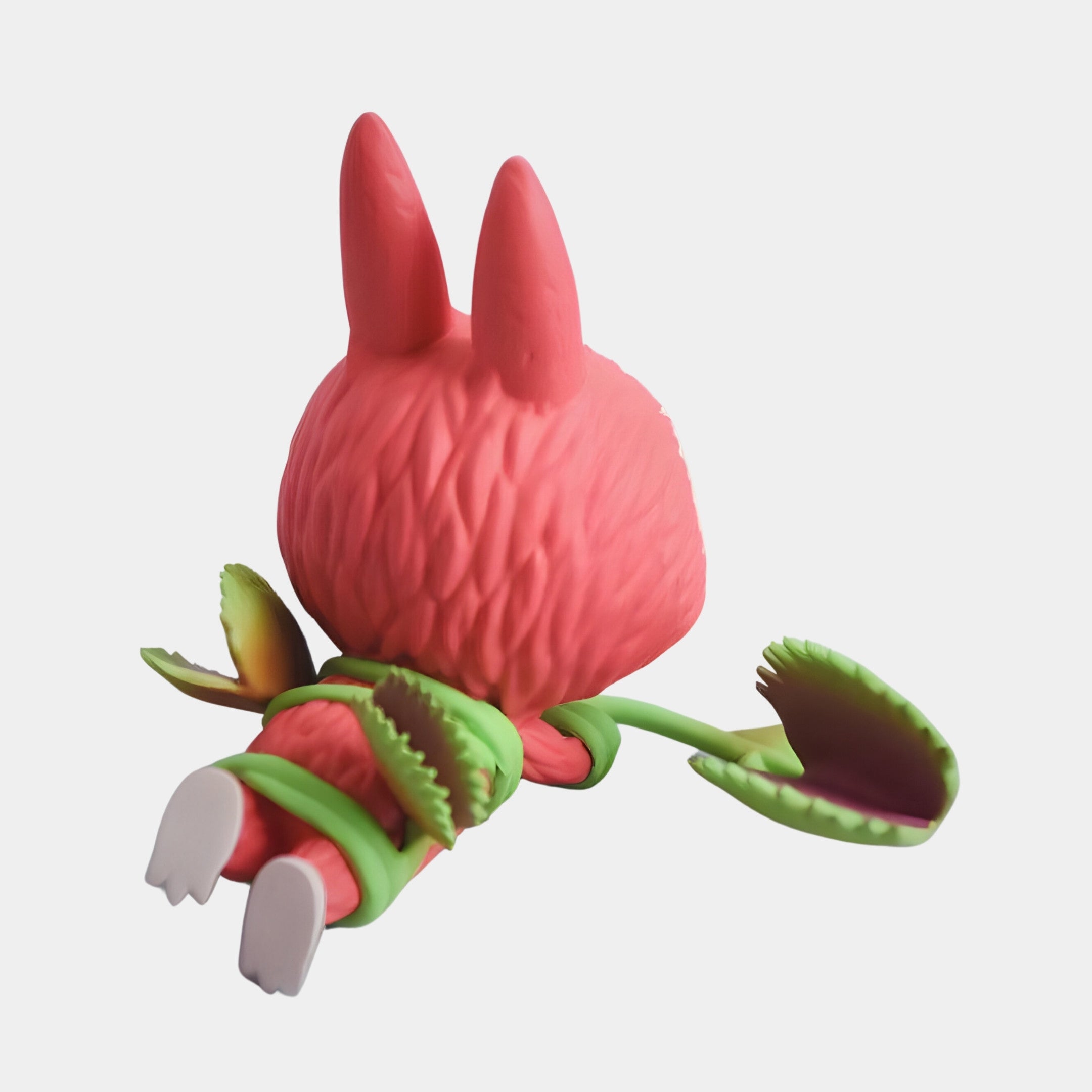 The Flower Elves Venus Flytrap Labubu Sculpture 160cm is a quirky mix of playfulness and wild creativity. Cast in durable fibreglass, this larger-than-life sculpture stars Labubu with vivid red fur, oversized ears, and a mischievous grin. It’s wrapped in a climbing vine, with its body intertwined with sculpted flytrap leaves and blossoms. One outstretched arm presents a detailed Venus flytrap, coloured in earthy green and orange tones, adding an unexpected, humorous twist. From the bold contrast between Labubu’s pale face and the intense red coat to the sculpted texture on the body and leaves, every part of this piece leans into fantasy-meets-nature storytelling. Its forward-leaning pose and wide-eyed gaze suggest curiosity or a cheeky plan unfolding.